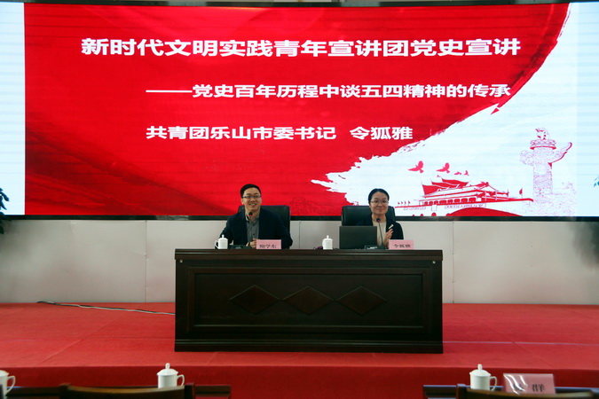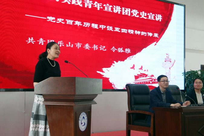 今年是中国共产党成立100周年,为深入开展党史学习教育、学习贯彻习近平总书记在清华大学考察时重要讲话精神,4月28日,新时代文明实践青年宣讲团“百人千场”宣讲活动走进BV伟德官方网站,乐山市新时代文明实践青年宣讲团召集人、共青团乐山市委书记令狐雅围绕《党史百年历程中谈五四精神的传承》的主题为BV伟德官方网站“青马工程”(青年马克思主义者培养工程)培训班的学员和教师代表共200余名师生开展党史学习教育专题宣讲。本次宣讲由BV伟德官方网站副院长鲍学东主持,学院党委书记易群参加。