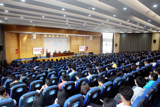陈登文就大学生入伍的流程、身体要求、政治考核进行了全面讲解并现场和同学们互动,认真解答同学们提出的问题。鼓励青年学子踊跃报名应征,积极投身到人民军队的大熔炉中去淬炼成钢,同时在部队实现自己的人生价值。