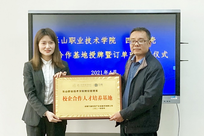 2021年4月16日下午,学院与贝壳公司校企合作授牌暨订单班开班仪式在2号教研楼110会议室隆重举行。贝壳公司成都区负责人任倩,学院党委副书记陈芝海,财经系党总支副书记(主持党总支工作)易新忠、系主任邵其会出席,“贝壳班”全体学员参加了仪式。