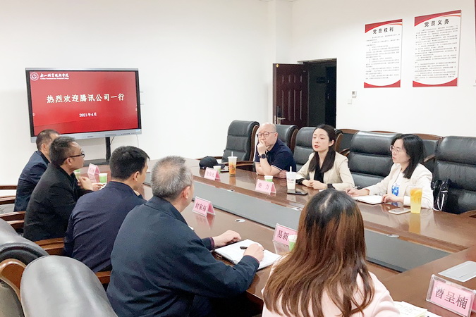双方围绕组建订单班、学徒制冠名班、师资培养、社会服务、沟通机制等进行了深入交流,初步达成了合作意向。腾讯公司拟在财经管理系2019级实习班级中选择学生组成订单班,经培训后进入腾讯公司实习就业;在2021级新生中组建学徒制腾讯班;共建产业学院等方面与学院达成了共识。