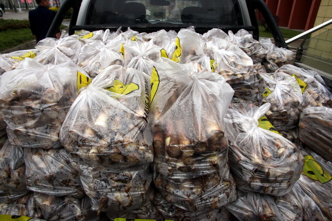 31日早晨,两车满载乡村振兴的三月笋,由罗卜村第一书记魏凡(学院下派扶贫干部)、村主任阿市阿兄一行4人送到学院。上午11点,学院工会组织人员将三月笋分发并送到各二级工会。