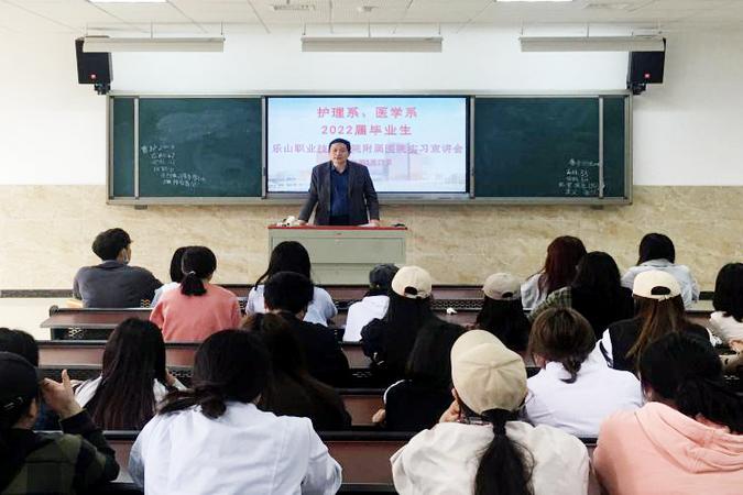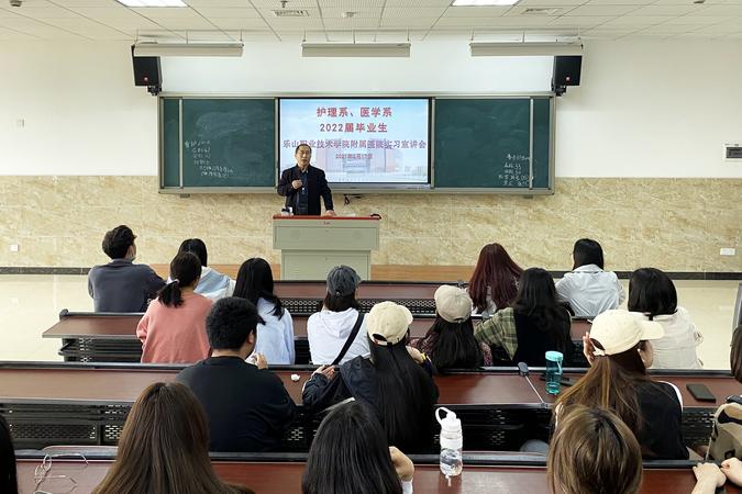 为推进2022届医护专业毕业生实习工作,3月17日下午,医护系邀请附属医院相关负责人,在教学楼2C302召开了“BV伟德官方网站附属医院实习宣讲会”。护理系党总支书记郑平、附属医院副院长刘剑锋、护理部主任陈丽蓉、医务科科长许岚到会并作宣讲,医护系顶岗实习管理干事曾川及2022届毕业班级班长、学习委员和有意向前往附属医院实习的同学参加了会议。