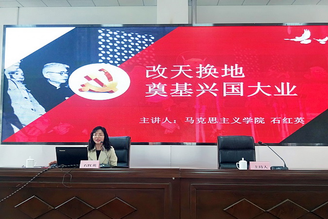 为认真贯彻落实中央关于开展好党史学习教育精神,加强青年大学生“四史”教育,3月17日下午,学院党委宣传部在学术交流中心举办党史学习教育宣讲报告会,马克思主义学院副教授石红英主讲,近百名学生代表参会。报告会由学院宣传统战部部长石建华主持。