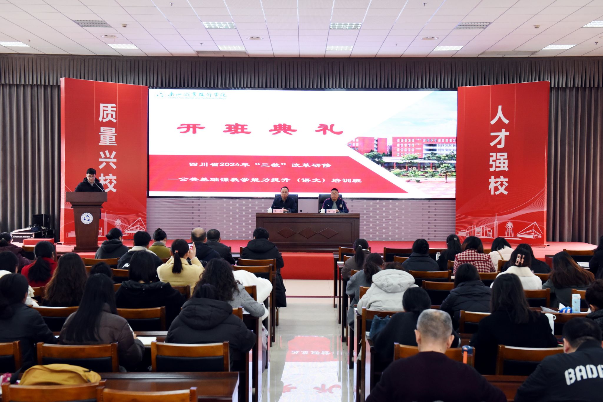 12月2日,四川省“三教”改革研修——公共基础课教学能力提升(语文)培训班在BV伟德官方网站开班。学校党委副书记、工会主席张佳出席开班仪式并致辞,素质教育学院相关负责人、任课教师和来自全省各中职学校的近100名学员参加,人事处相关负责人主持开班仪式。
