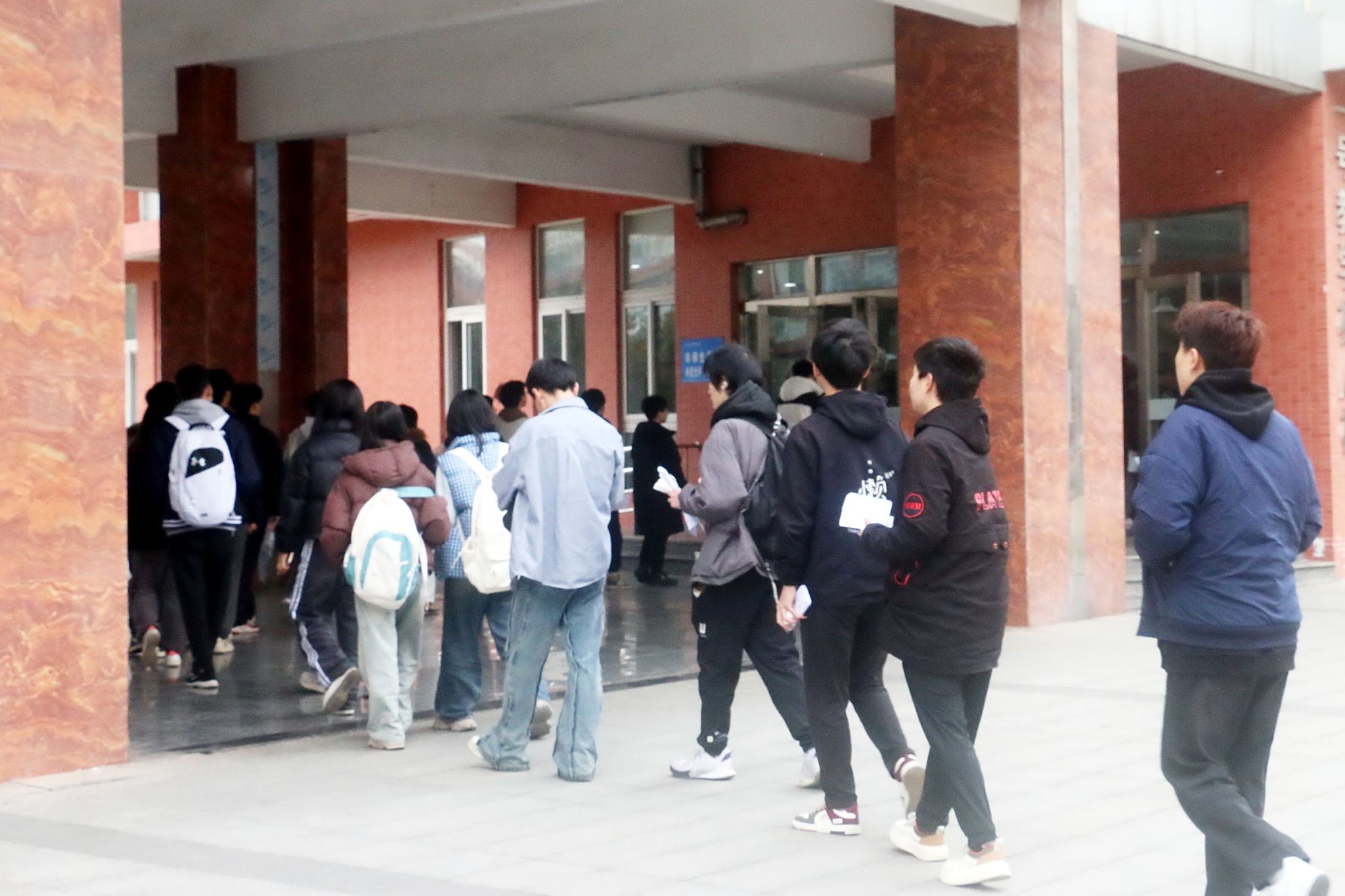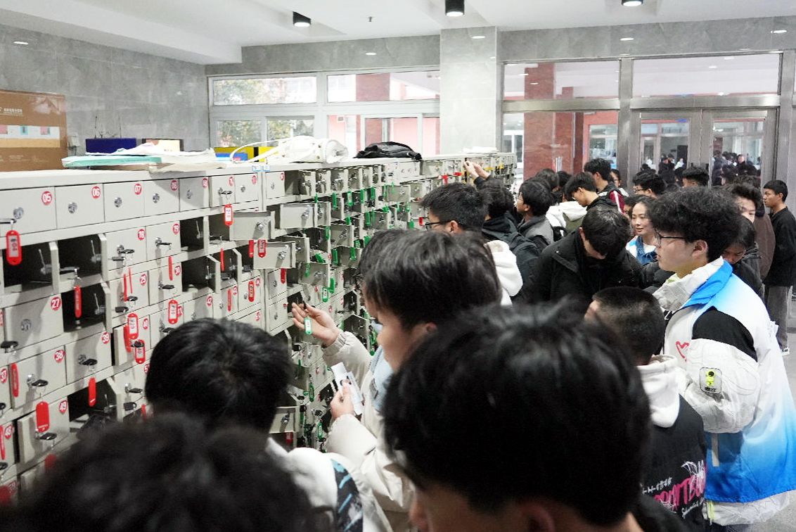 直至8点,考点内工作人员开始陆续分批组织考生们进入考场,只见考生们排起长龙大队,在工作人员的引导下,先将手机、充电器等电子产品放入手机柜,放置好书包后再正常通过“智能安检门”进入考场,现场一切安排得井井有条。待9点开考铃响起,考生们开始答题,监考老师严格执行考试规则,确保考试过程严谨、公正进行。