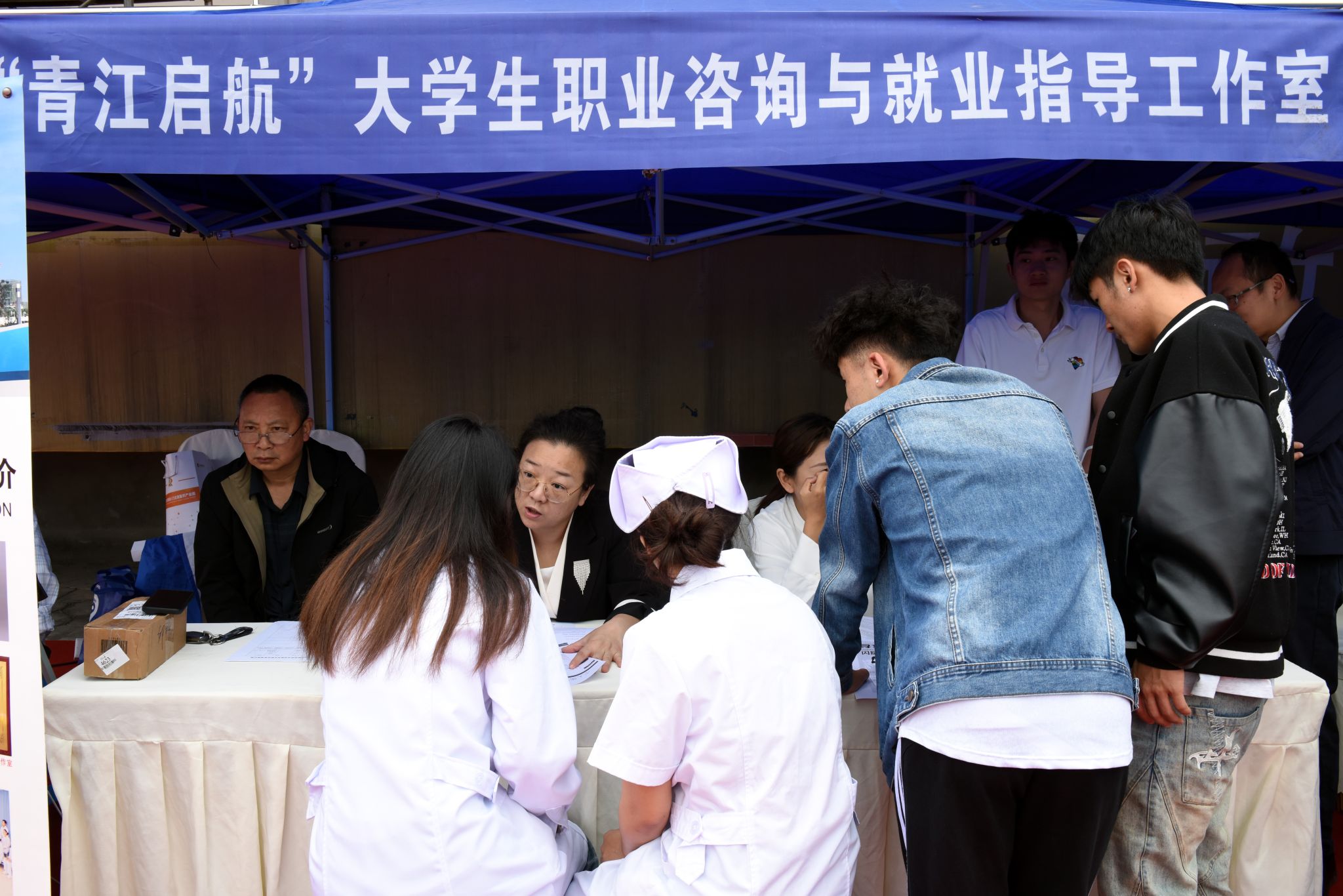 本次双选会得到了乐山市人力资源和社会保障局、乐山国家高新技术产业开发区产教联合体及乐山市各区县人力资源和社会保障局的大力支持,共有来自四川、重庆、浙江等地的320余家优质企业前来招贤纳才,招聘企业涵盖医药卫生、电子信息、新能源、机械制造、文化旅游、金融创意、现代农业等10余个热门行业,本地企业占比超50%,为伟德官网学生提供就业和实习岗位6000余个。双选会现场还设置有“乐山市人力资源和社会保障局就业创业咨询”、“青江启航大学生职业咨询与就业指导”、”应征入伍“等职业生涯规划与就业指导咨询专区,为同学们提供“一站式”就业政策讲解并解答求职中遇到的困惑,同时设置专区提供“就业心理咨询”服务,全方位为同学们落实实习和就业保驾护航。