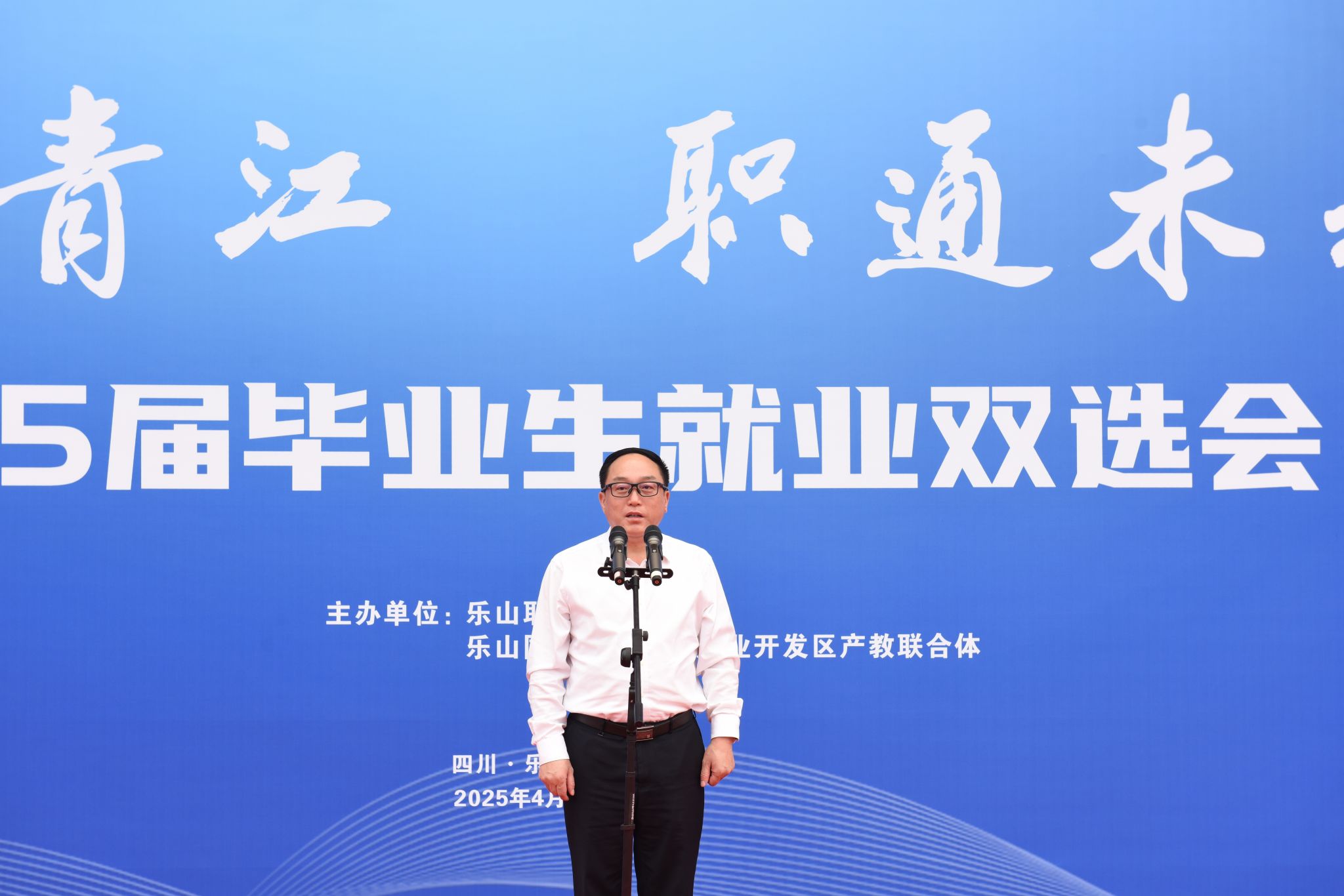 校长刘忠在启动仪式上致辞,对前来参加双选会的各行业、企业代表表示诚挚欢迎。他表示,为办好此次双选会,学校紧扣乐山产业发展,多次前往乐山市各区县开展全覆盖对接调研,深度对接县域经济发展需求,精准拓岗。希望同学们能利用好此次学校为大家精心搭建的双选桥梁,以饱满的热情、扎实的功底和自信的态度开启精彩职业生涯。
