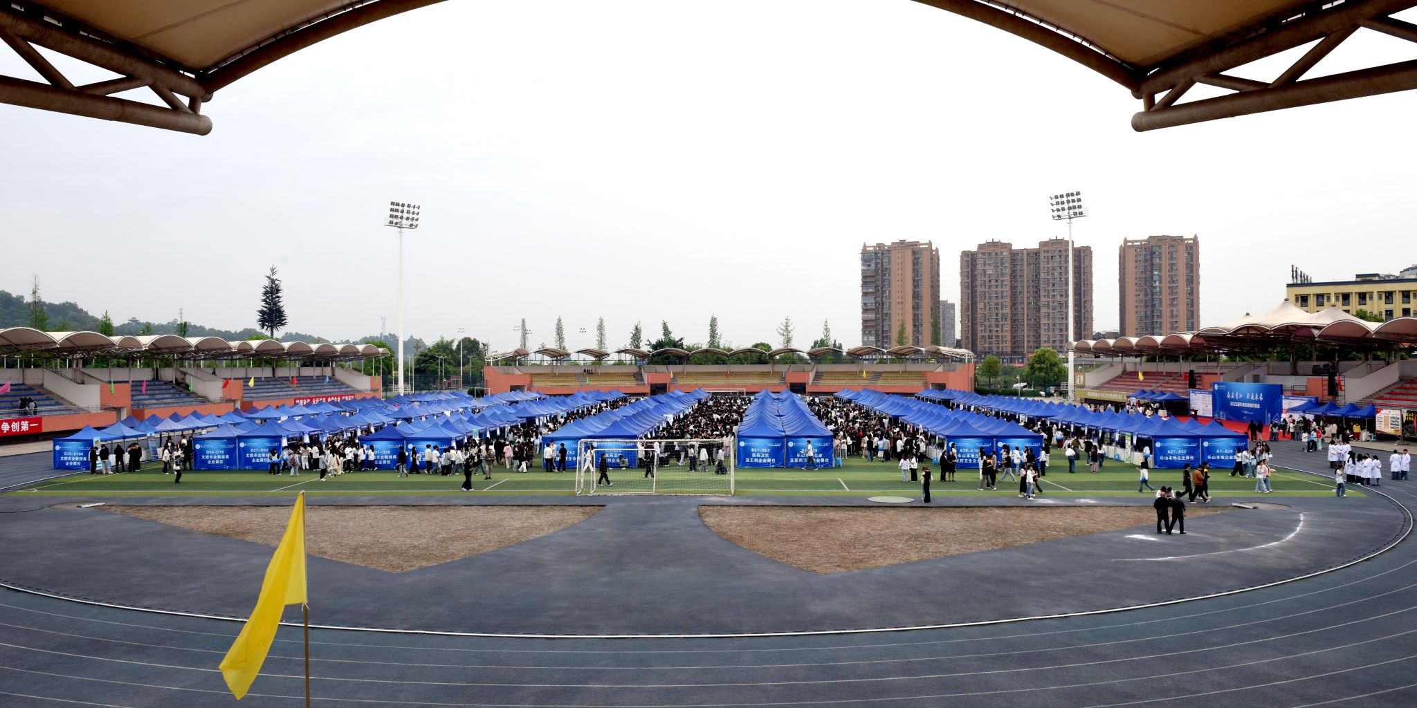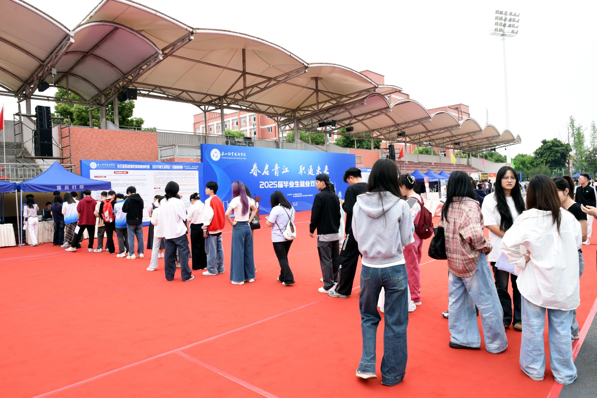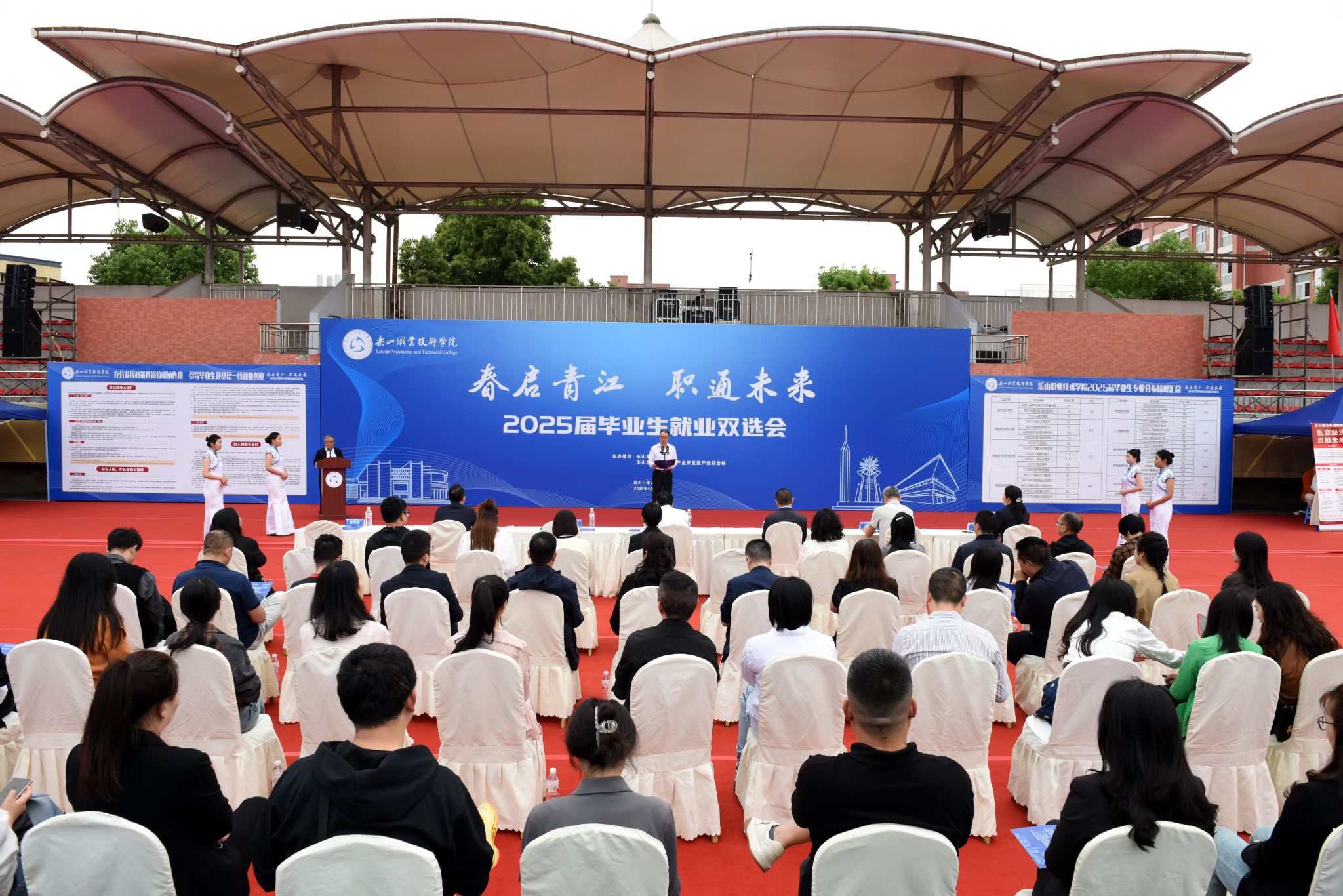 4月25日,学校2025届毕业生就业双选会在主运动场举办,学校党委书记成定彬出席并宣布“2025届毕业生就业双选会正式启动”。学校领导刘忠、张佳、李昌贵、张学河,乐山市人力资源和社会保障局党组成员、副局长赵川出席启动仪式,各区县人社局主要负责同志,学校相关部门和二级学院负责人,招聘企业代表,以及5000余名2025届毕业生、2026届即将离校实习生参加了启动仪式。