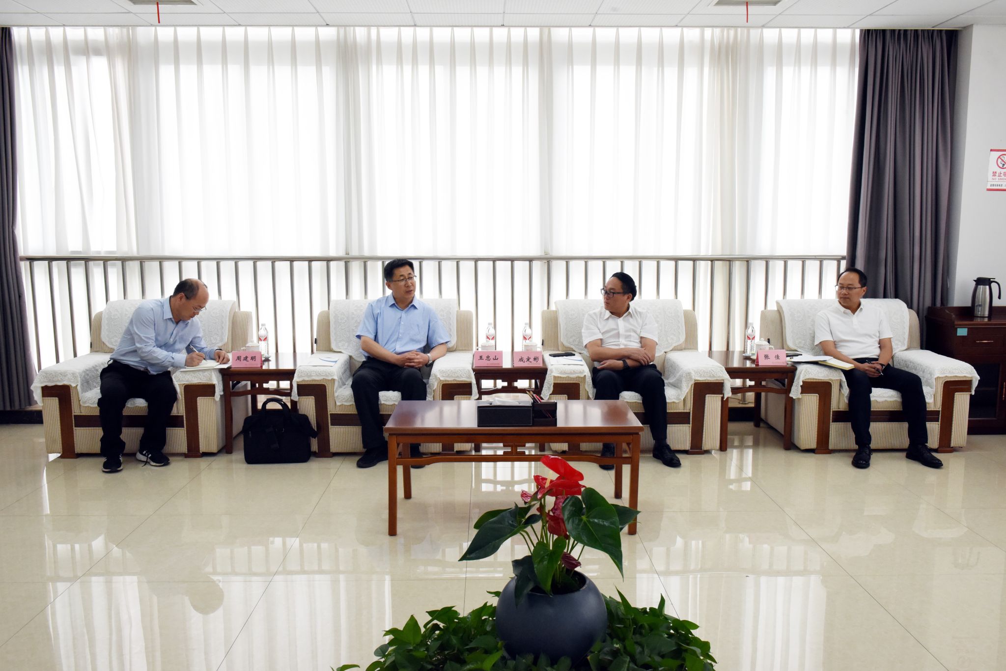 5月16日上午,潍坊工程职业学院党委副书记、院长王忠山一行5人来校调研交流。学校党委书记成定彬,党委副书记、工会主席张佳在428会议室与王忠山一行进行了座谈交流。
