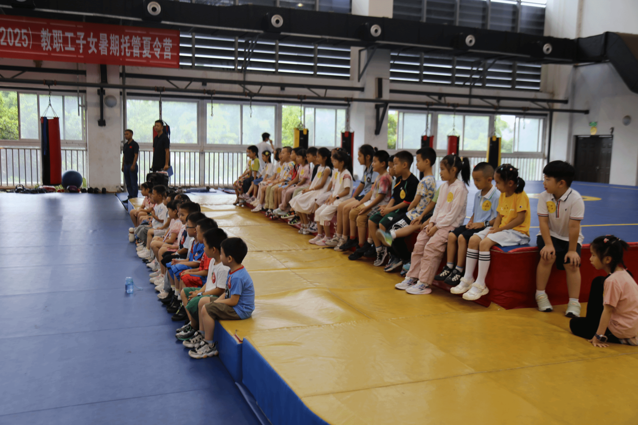 6月30日上午,在BV伟德官方网站体育馆二楼青江武术散打训练基地,在嘹亮的国歌声和精彩的武术展演活动中开启了伟德官网第三届教职工子女暑期爱心托管夏令营。100余名教职工子女及其家长参加了开营仪式。
