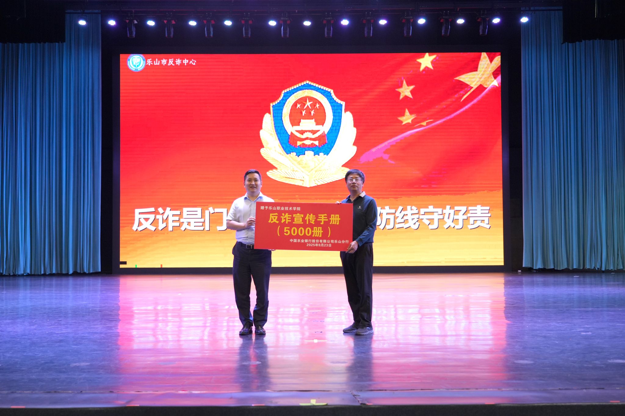 活动开始,中国农业银行乐山分行向学校捐赠了一批反诈宣传物资。学校保卫处处长叶宏光代表校方接受捐赠。同时,银行客户经理罗蕊向新生普及了银行卡安全使用规范、如何杜绝网络贷款诈骗、怎样防范电信诈骗“三不一要”等实用知识。