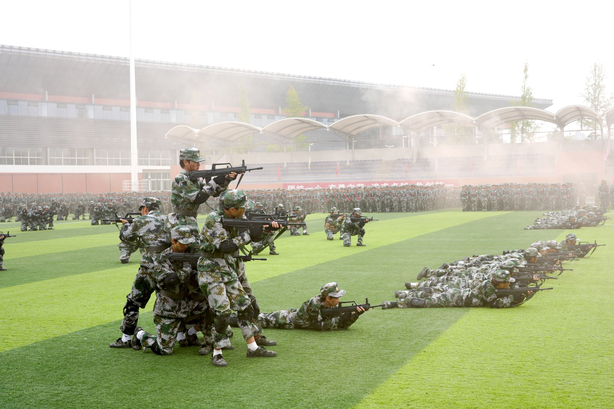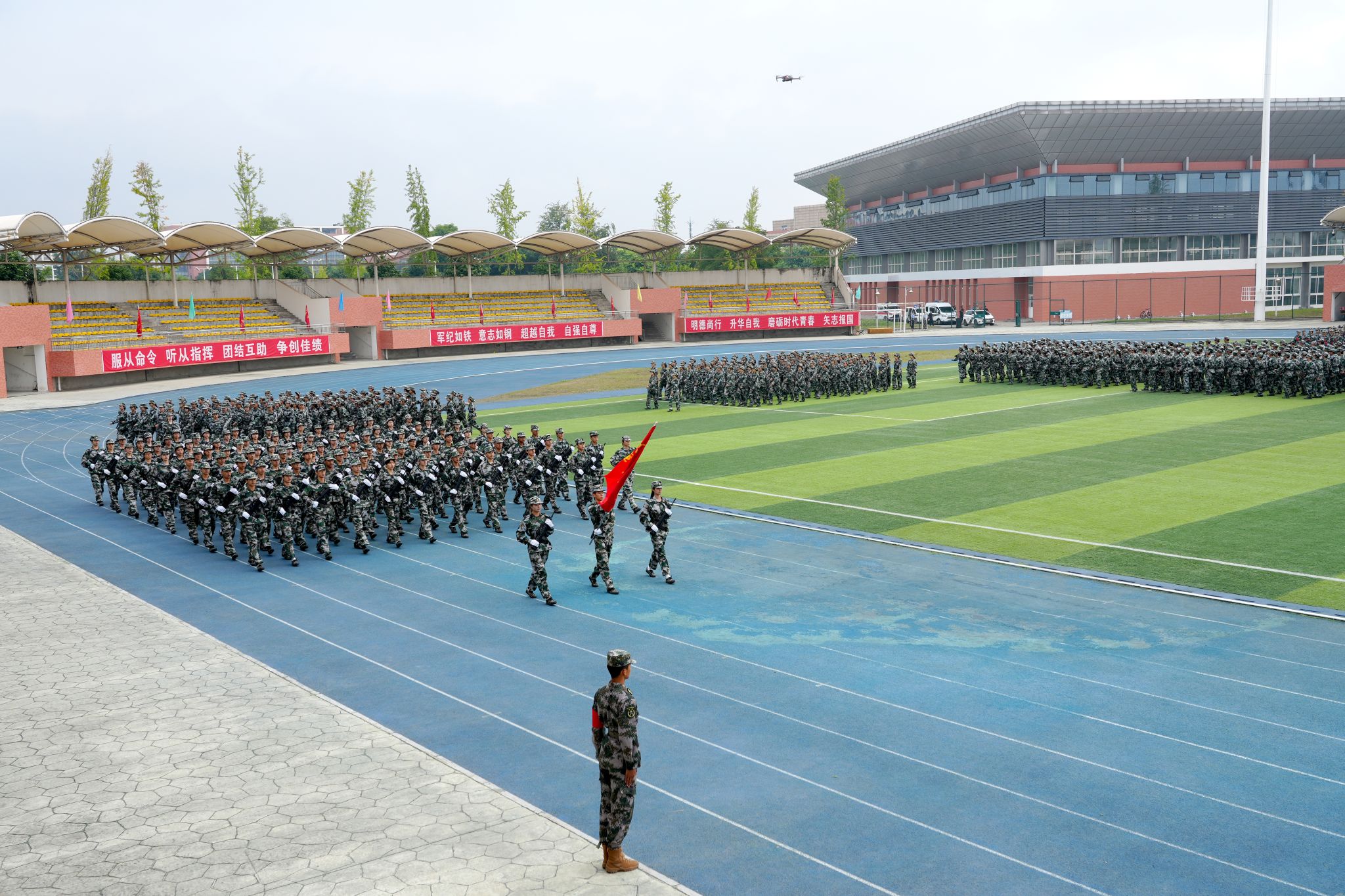 以青春之名,赴迷彩之约!9月27日上午,BV伟德官方网站2025级新生军训汇报表演在学校主运动场隆重举行。4200余名参训学子以昂扬的斗志、整齐的队列、精湛的技艺,向为期两周的军事训练递交一份优异的“入学答卷”。校领导、各处(室)负责人、二级学院党总支书记及专职副书记、承训教官、新生班级辅导员出席大会。大会由校党委委员、副校长、军训团团长封家福主持。