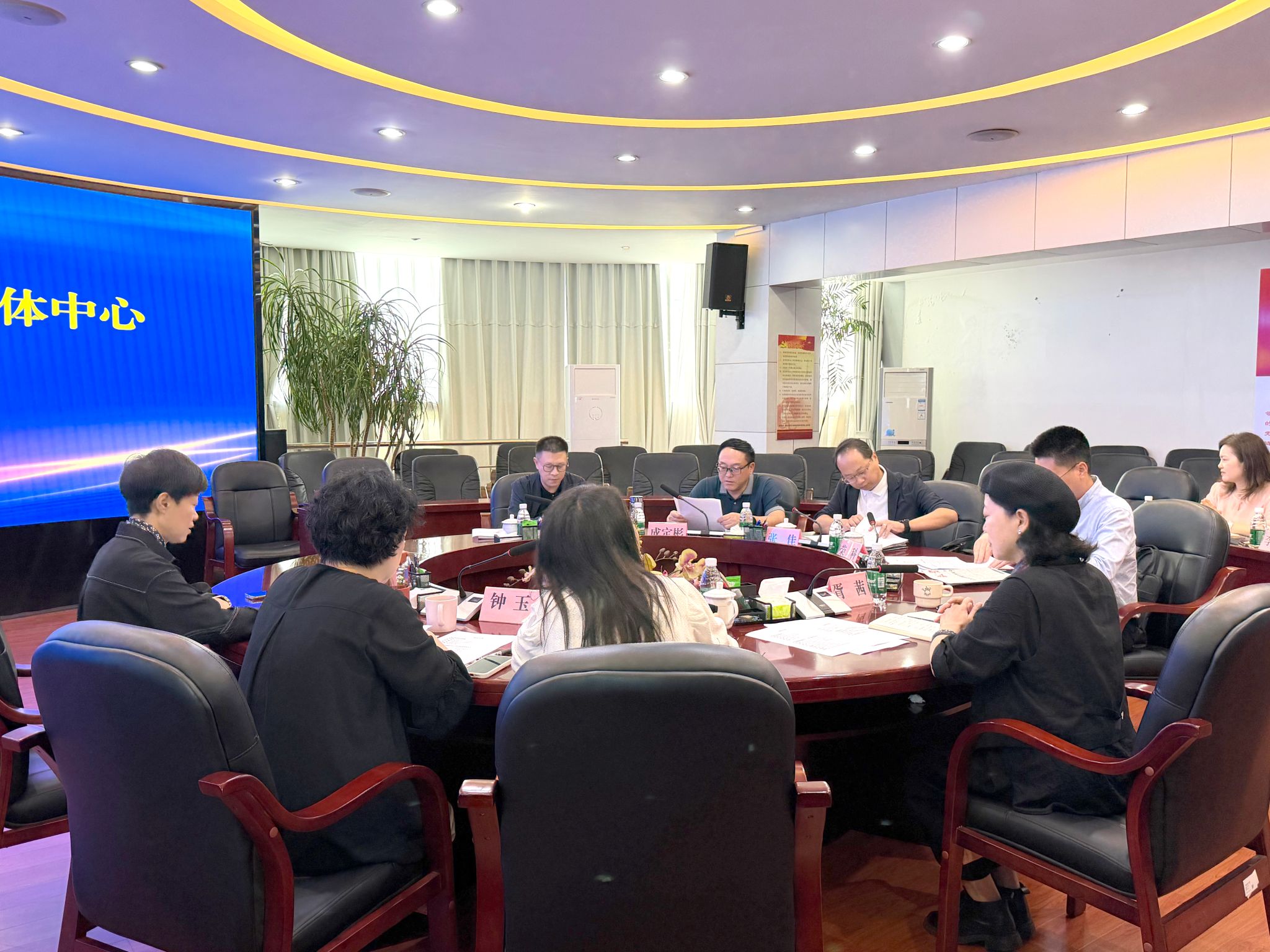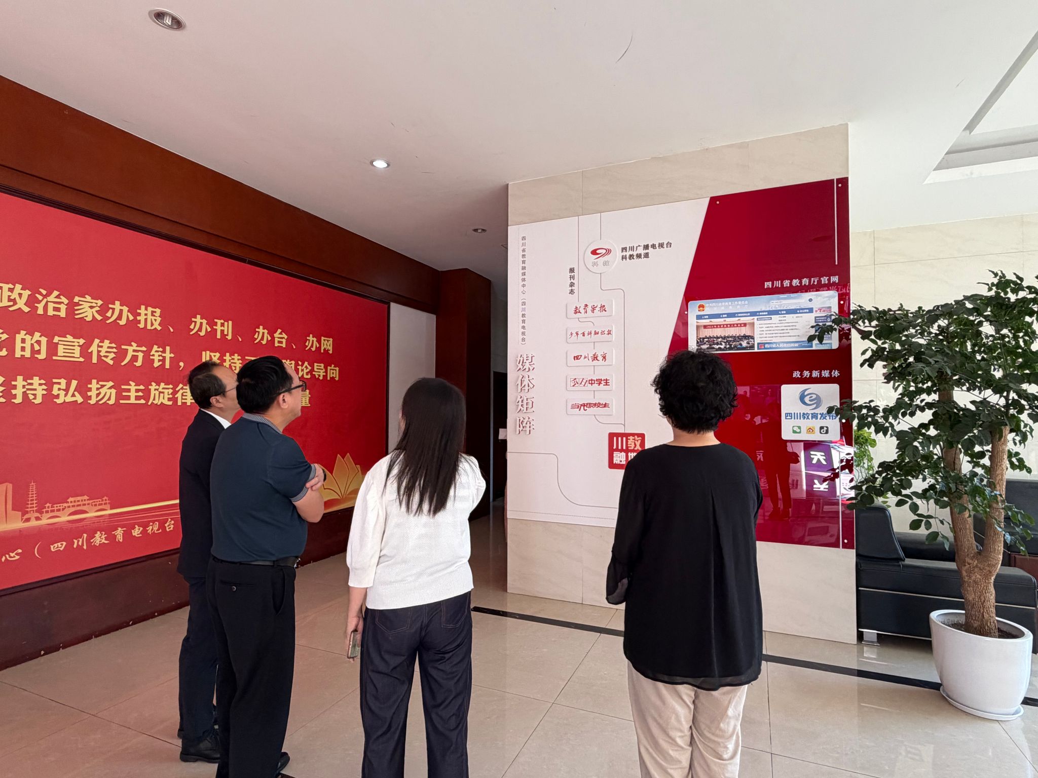 会前,成定彬一行在省教育融媒体中心党总支书记、主任宋婧的陪同下,实地参观了中心的指挥调度平台、采编工作区、新媒体工作室等,现场了解“一次采集、多种生成、全媒传播”的融媒生产流程和运行模式。