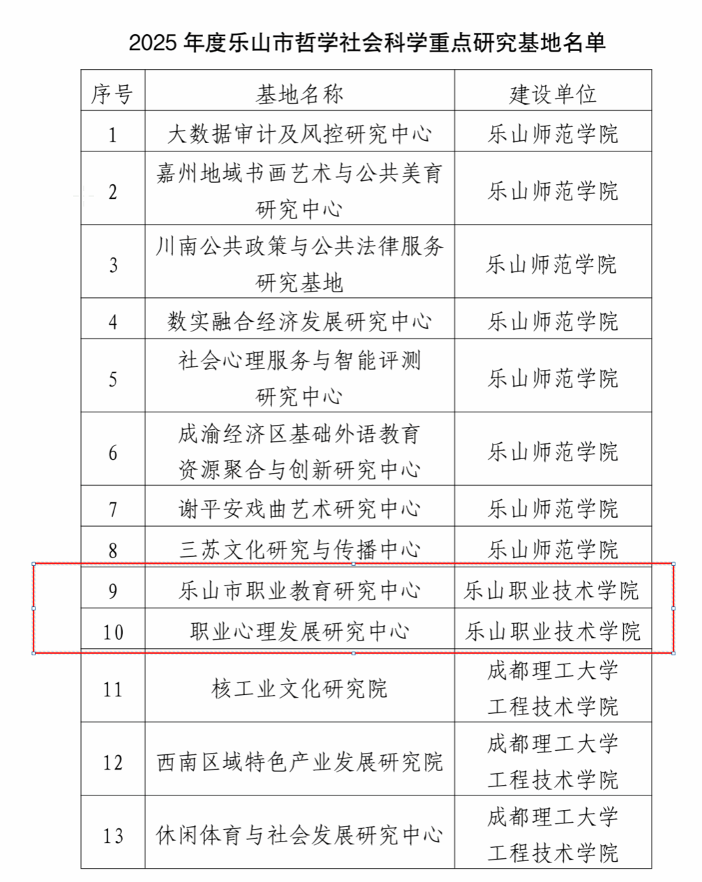 10月,经乐山市社科联批准,乐山市职业教育研究中心、职业心理发展研究中心正式入选市级哲学社会科学重点研究基地。两大基地将针对职业教育改革与人才培养痛点,为区域产业转型提供智力支持。