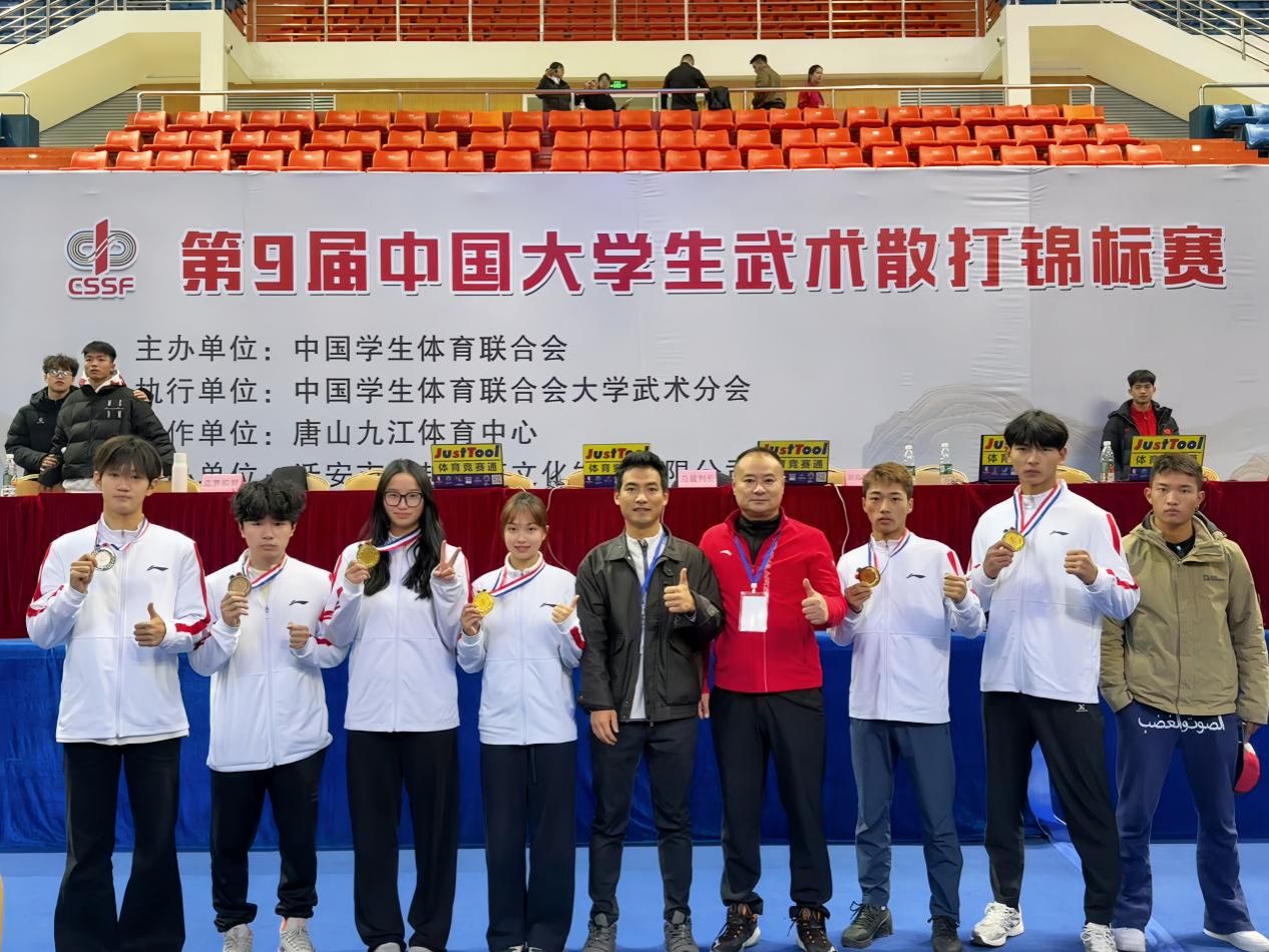 11月1日—8日,2025第九届中国大学生武术散打锦标赛在河北省迁安市九江体育中心举行。伟德官网代表队7名运动员分别参加了高职高专组(乙A组、乙B组)和高水平组(丙A组)的比赛,最终以“四金一银一铜、一个第五名”的优异成绩,创伟德官网散打队参加全国比赛夺金新纪录。