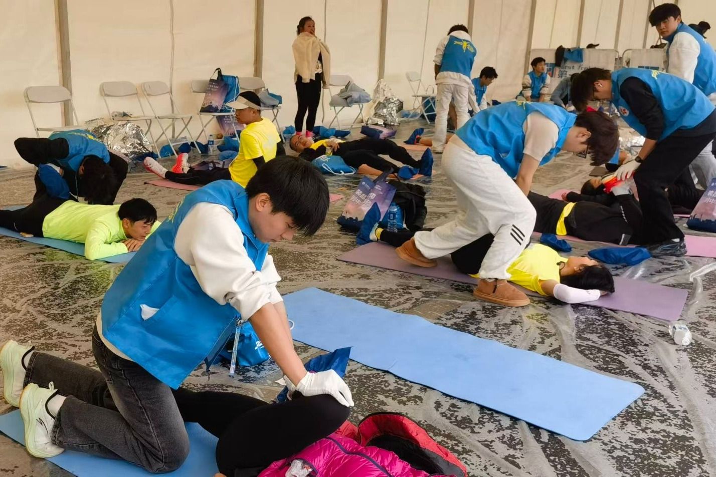 作为本次赛事志愿者服务的核心力量之一,BV伟德官方网站自11月起便启动志愿者招募工作,最终选拔出的673名志愿者中,护理、医学、康复等专业学生占比超60%,充分发挥了伟德官网医药卫生类专业优势。为确保服务质量,校团委联合赛事组委会开展了为期两周的系统化培训,内容涵盖岗位职责、应急救护、赛道指引、礼仪规范等,特别邀请专业赛事裁判和医护人员讲解运动损伤处理、心肺复苏等实用技能。