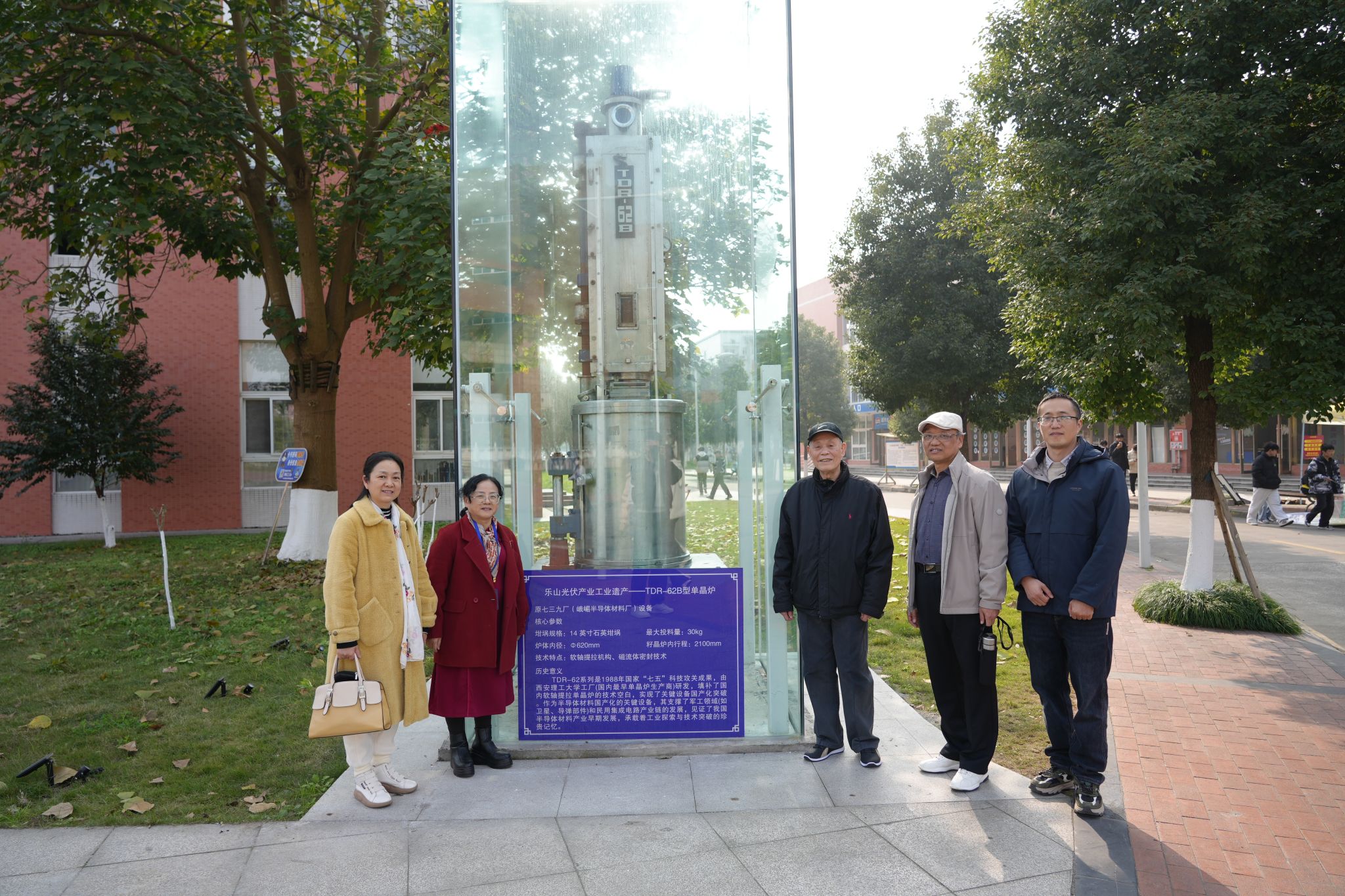 活动最后,专家们与师生代表合影留念。三位前辈亲历峨嵋半导体材料研究所辉煌岁月、见证产业从无到有,他们是深耕半导体材料领域、推动技术创新的中坚力量。此次交流让三线建设精神在师生心中落地生根。未来,学校将持续加强与行业前辈的联系,以精神传承赋能人才培养,为新能源产业发展贡献职教力量。