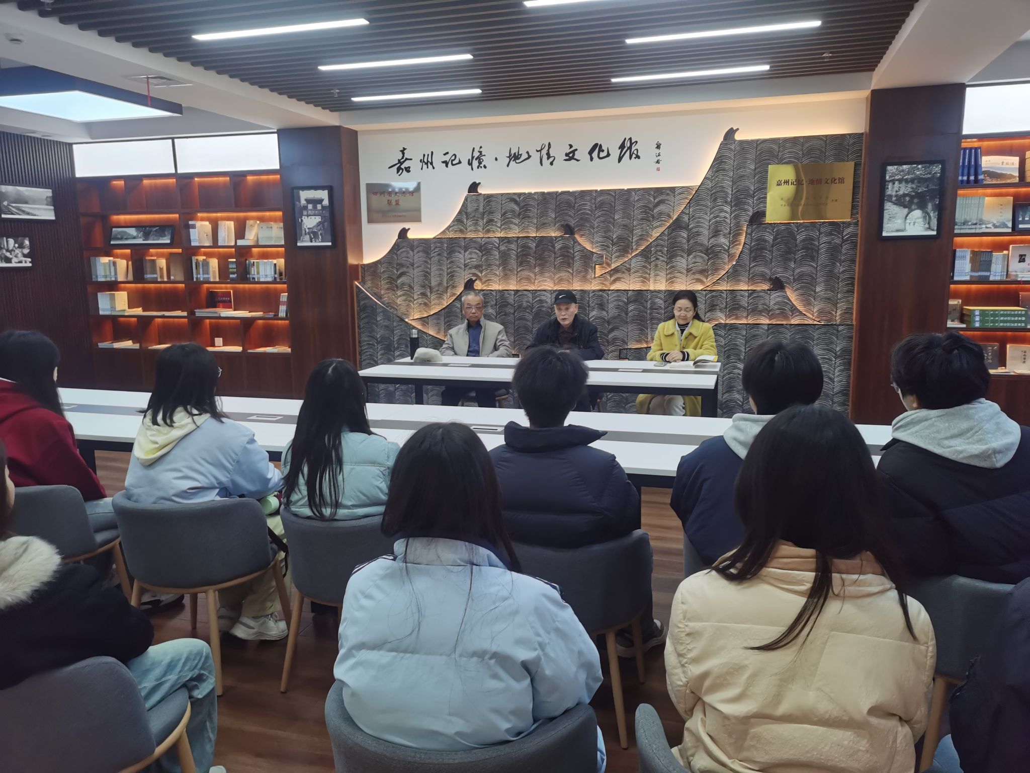 在图书馆 “嘉州记忆” 座谈环节,新能源与材料学院关工委组织30多名学生代表与专家面对面交流。黎展荣老专家结合自身 50 年行业经历,分享了我国多晶硅材料从无到有、从 “跟跑” 到 “并跑” 的奋斗历程,他从 1964 年投身多晶硅材料研发,历经三线建设内迁的艰苦岁月,深耕行业整整 50 年。期间不仅担任峨嵋半导体材料研究所多晶硅研究室主任,带领团队完成多项国家级研发项目,更斩获国家科学技术进步奖二等奖、四川省科技进步奖一等奖等重磅荣誉,还获评四川省劳动模范、“全国五一劳动奖章”获得者,享受国务院政府特殊津贴。他手中的每一项成果、每一份荣誉,都是对 “工匠精神” 最生动的诠释。黎老以 “一辈子只做一件事 —— 研究硅材料” 的坚守,鼓励同学们扎根专业、刻苦钻研。随后陈颖老师也与同学们分享了乐山多晶硅企业的发展历史,启发同学们的学习和职业规划;张建忠老师作为四川省三线建设研究会会员,还与在场师生分享了三线建设时期峨嵋半导体材料厂的发展故事,深深地吸引在场的每一位同学。