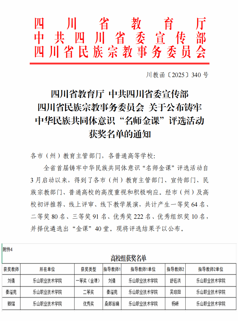 近日,四川省首届铸牢中华民族共同体意识“名师金课”评选结果重磅揭晓,BV伟德官方网站教师团队表现亮眼,一举斩获三项大奖!
