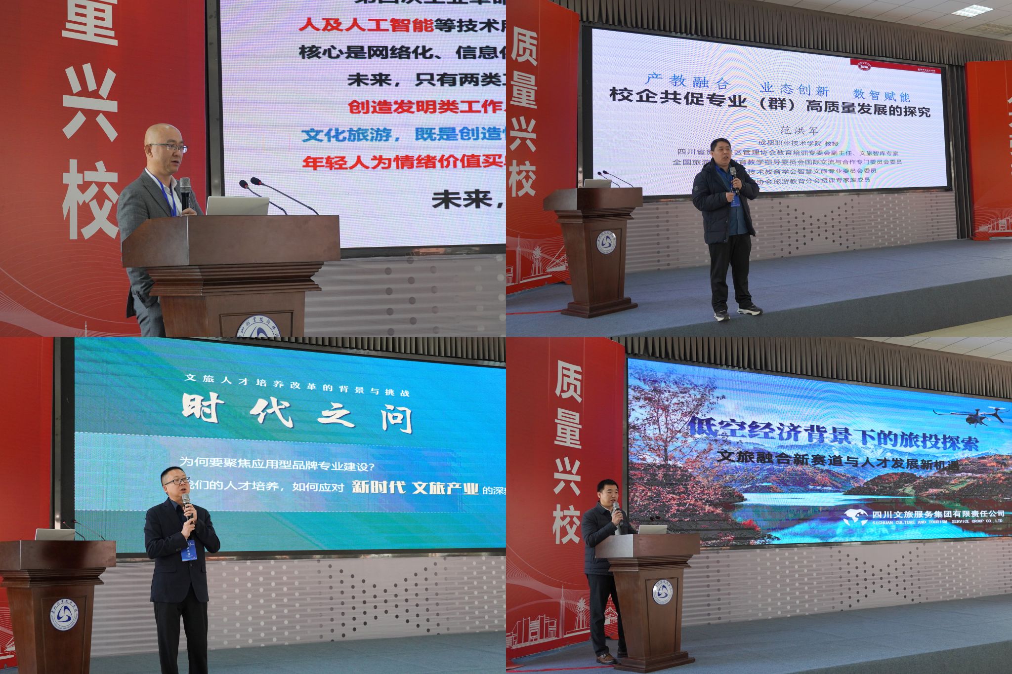 大会还邀请了业内知名专家作主题分享,四川旅游学院旅游文化产业学院党委副书记、院长、教授李智以“应用型品牌专业建设”为主题,分享专业定位、课程优化与实践教学改革经验;成都职业技术学院文化旅游学院教授、硕导、博士范洪军聚焦“产教融合、业态创新、数智赋能”,探究校企协同推动专业(群)高质量发展的路径;四川省童蒙雅正文旅集团有限公司董事长李正佐结合实践案例,分享“从‘融合’到‘共生’”的智慧文旅多业态融合探索;四川文旅服务集团有限责任公司副总经理李敬赫围绕“低空经济背景下的旅投探索”,解析低空经济与文旅产业融合的应用场景与发展前景。
