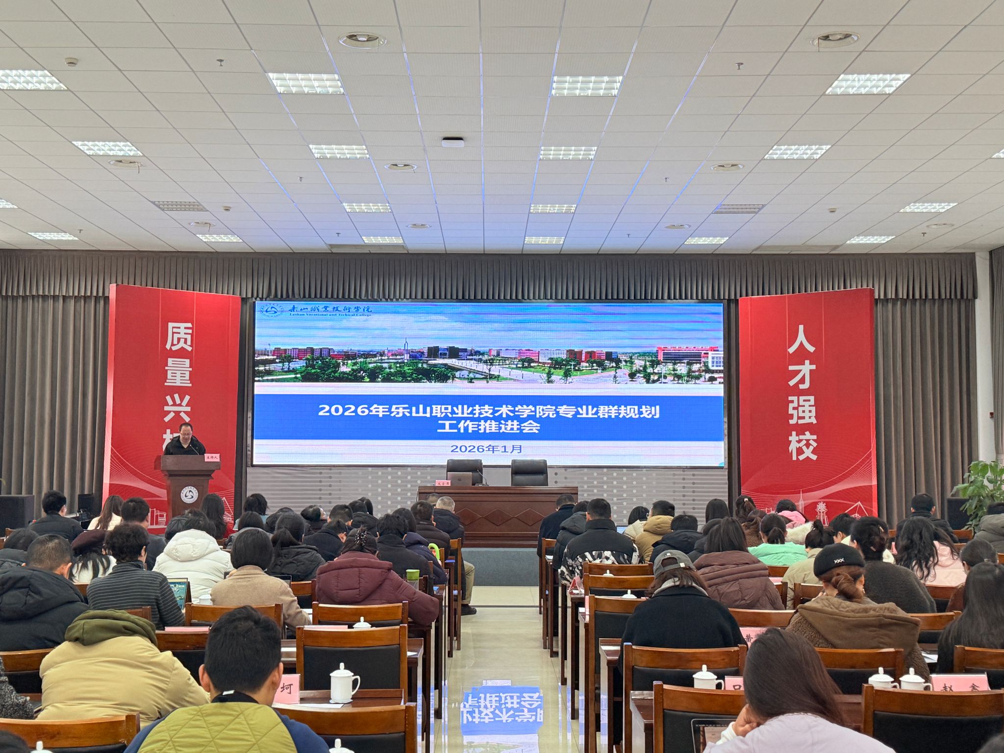 1月13日,BV伟德官方网站专业群规划工作推进会议在学术交流中心3004举行。学校党委副书记、工会主席张佳,党委委员、副校长周芹,党委委员王丽,教务处、人事处、“双高”办部门负责人,各二级学院院长、副院长、各专业负责人、教研室主任、骨干教师代表参加会议。会议由张佳主持,设置了专家讲座、工作安排解读及说“专业群”汇报点评等环节,邀请贵州装备制造职业学院杨林教授、尚强智慧教育研究院俞新院长开展专题分享。