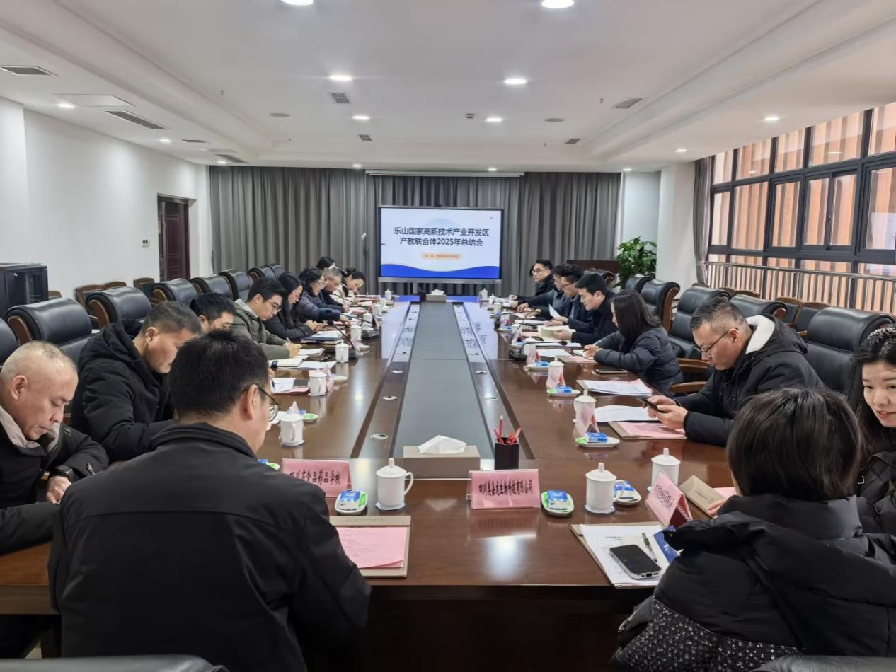 1月20日,乐山国家高新技术产业开发区产教联合体联席2025年总结会在学校顺利召开。市教育局总督学陈凯,高新区党工委委员、总工会主席罗林,学校党委委员、副校长周芹等出席会议。市教育局、高新区管委会相关负责人,各院校代表、企业代表及学校相关部门负责人参加会议。