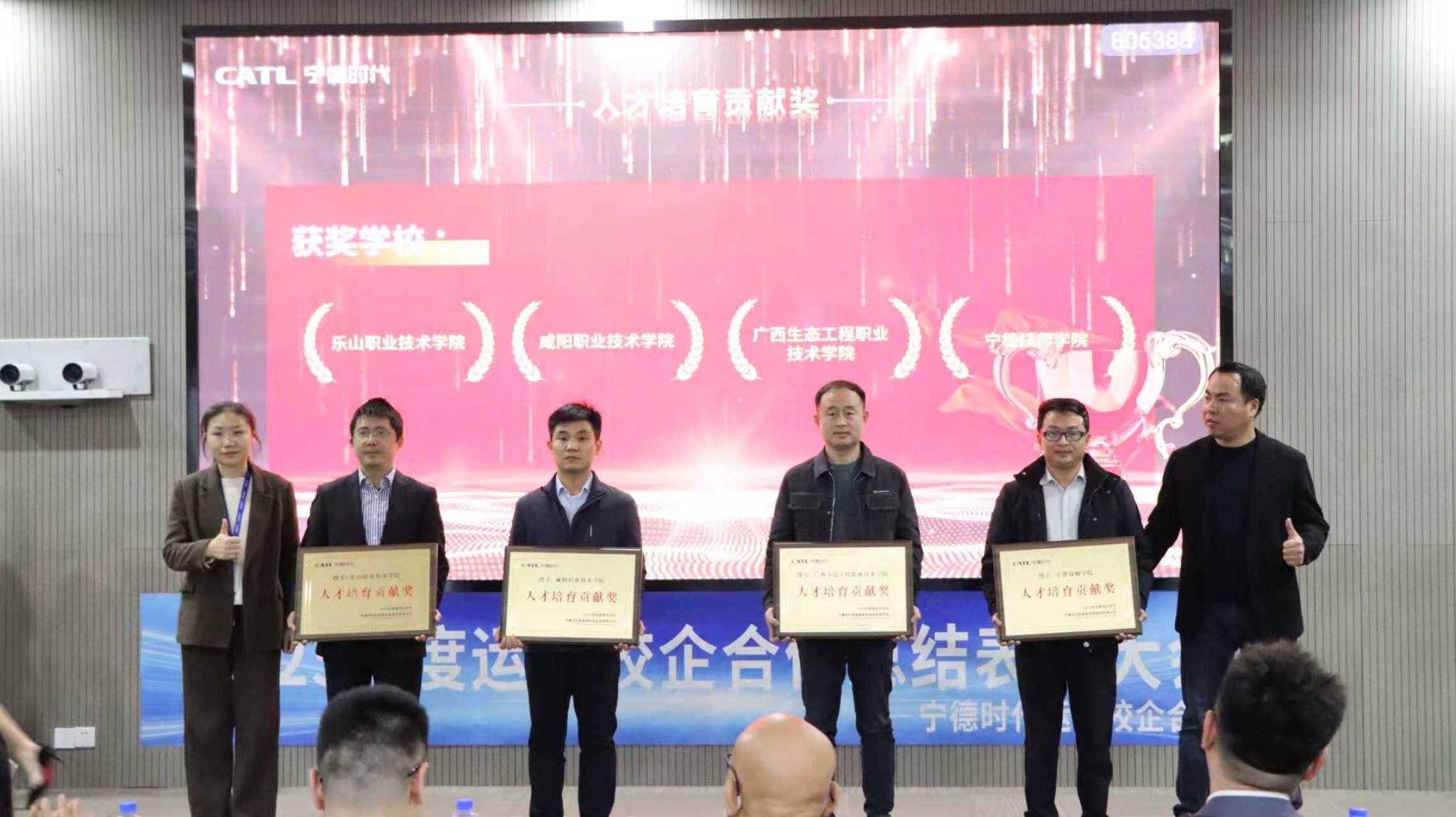 当日下午,表彰大会正式拉开帷幕。大会以“深化校企协同,共育产业英才”为核心,全面总结了2025年度校企合作取得的丰硕成果,对在合作中表现突出的单位与团队隆重表彰。凭借在人才培育、产教融合等方面的卓越贡献,BV伟德官方网站被授予“人才培育贡献奖”,这一荣誉既是宁德时代对学校人才培养质量的高度认可,也是双方长期深度合作的成果见证。