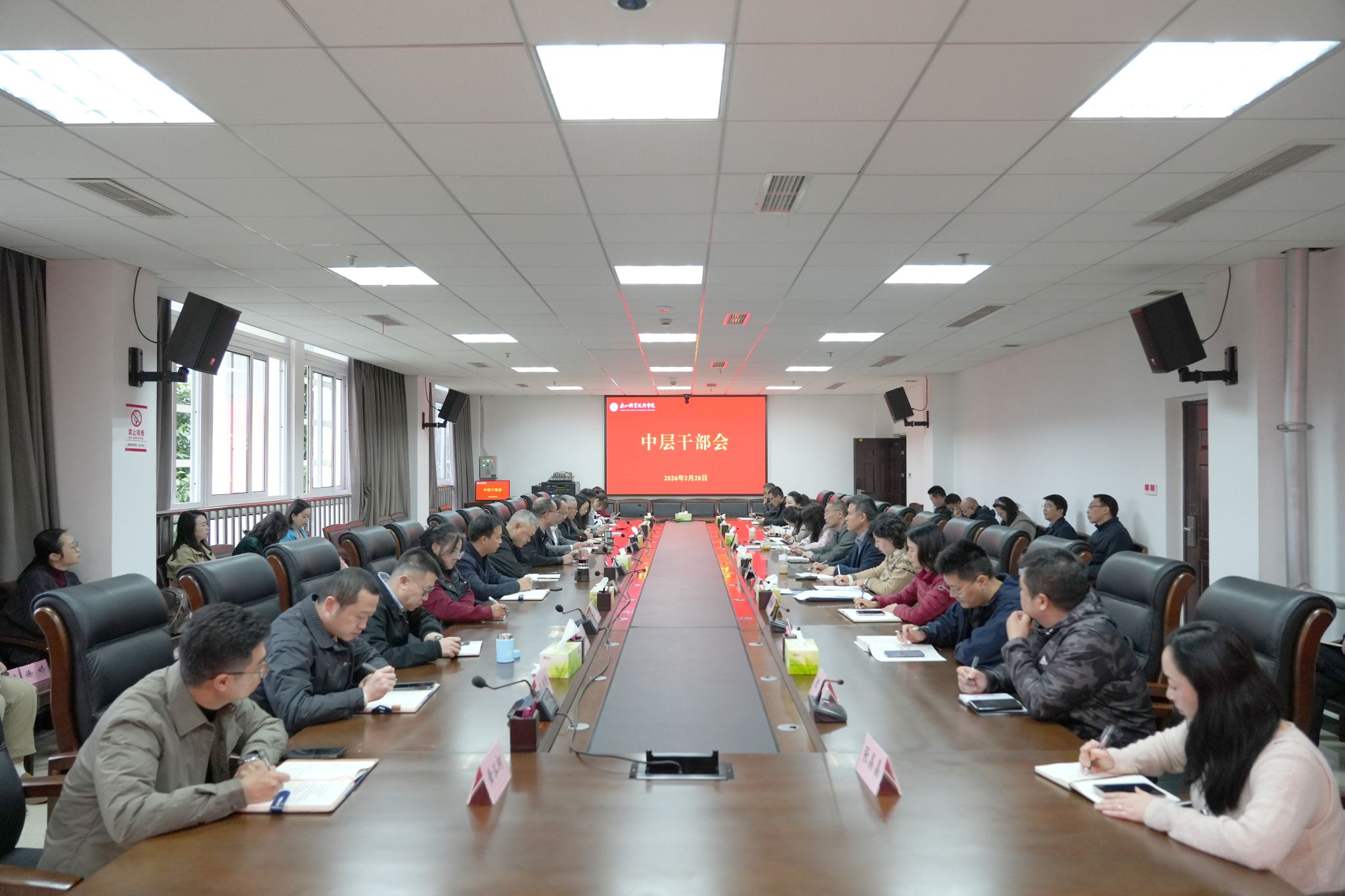 春启新章,奋进正当时。为统筹部署新学期各项工作,明确目标任务、凝聚奋进力量,确保春季学期开学工作平稳有序推进,2月28号上午,伟德官网召开2026年春季学期中层干部会议。校长刘忠出席会议并讲话,党委副书记、工会主席张佳,党委委员、纪委书记李昌贵,党委委员、副校长张学河、封家福、周芹出席会议,全体中层干部参加会议。