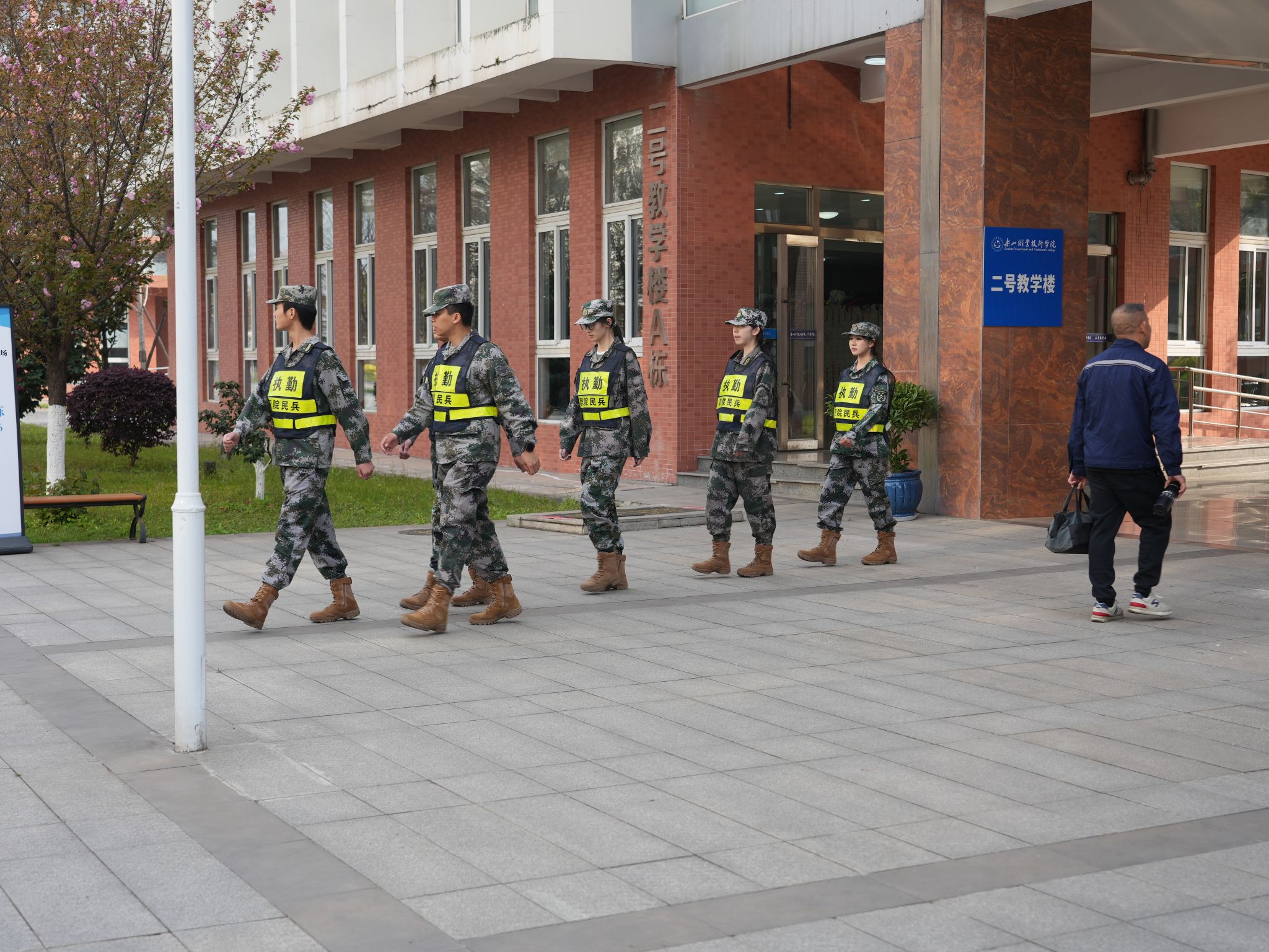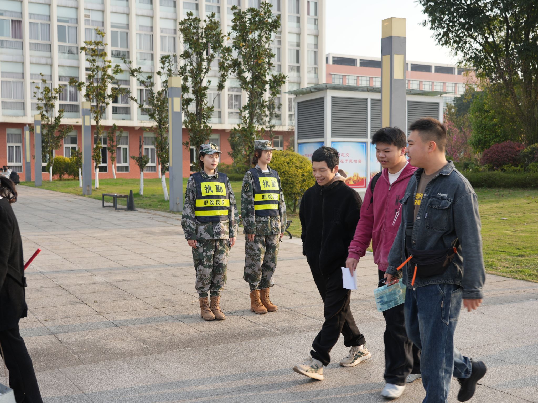 全校各部门通力合作,联合消防等部门对考场设备设施进行全面排查与维护,在考点内外设置清晰指引标识,配备医疗急救点、饮水处及备用考场,以应对各类突发状况。此外,由师生共同组建50余人的志愿者团队,为考生提供入场引导、物品存放等“一站式”暖心服务。乐职是考点,更是温暖的逐梦驿站。