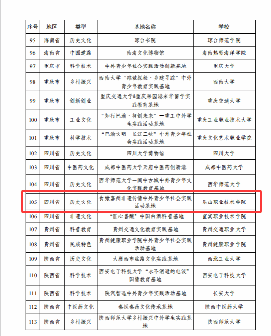 该基地获批类型为“历史文化”,是四川省此次入选的五个基地之一。基地将依托乐山丰富的饮食文化和非物质文化遗产资源,面向中外青少年开展具有地方特色的文化体验与社会实践活动,促进中外人文交流与文明互鉴。