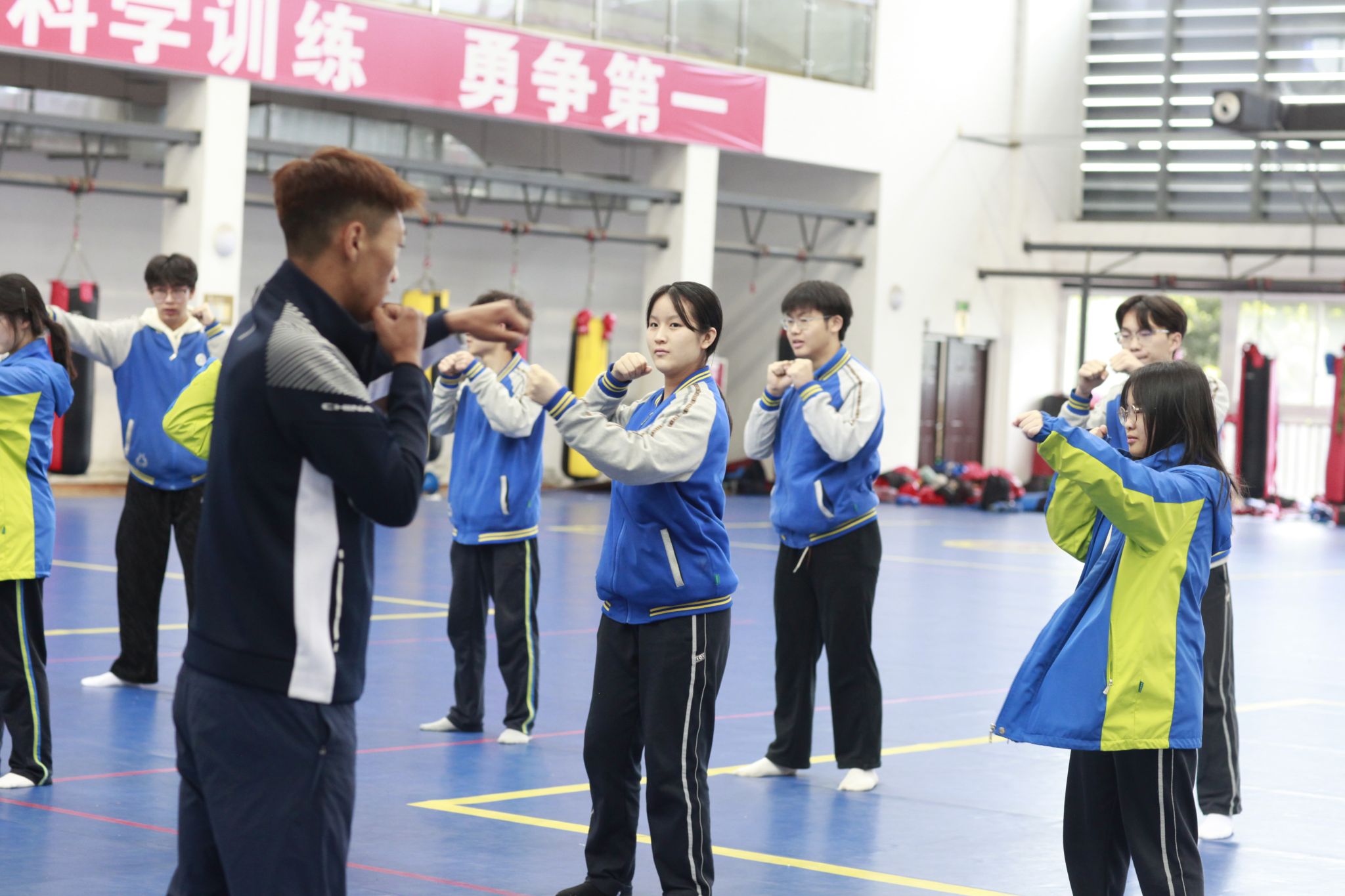 艺体融合,强健体魄精神:峨眉武术体验场上,同学们一招一式有板有眼,在挥洒汗水的同时,不仅强健了体魄,更传承了巴蜀大地坚韧不拔、自强不息的精神气概。