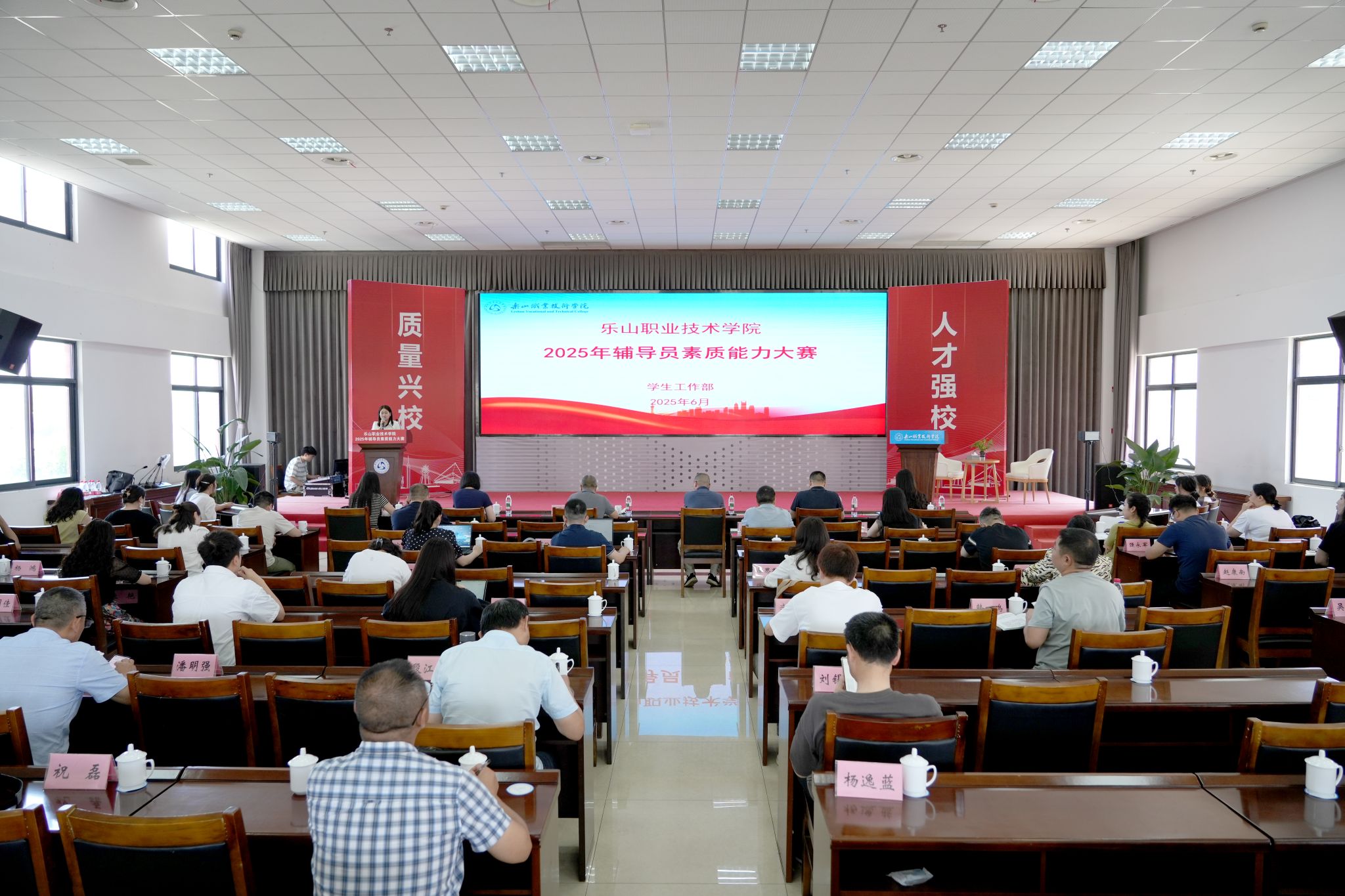 本次大赛邀请了乐山师范学院胡平建、成都理工大学工程技术学院梁静、学工部张勇、教务处彭瑶瑶、马克思主义学院刘倩等担任评委,各二级学院党总支书记、专职副书记、专兼职辅导员及部分学生也到场观摩,大赛受到全校上下的高度关注与重视。