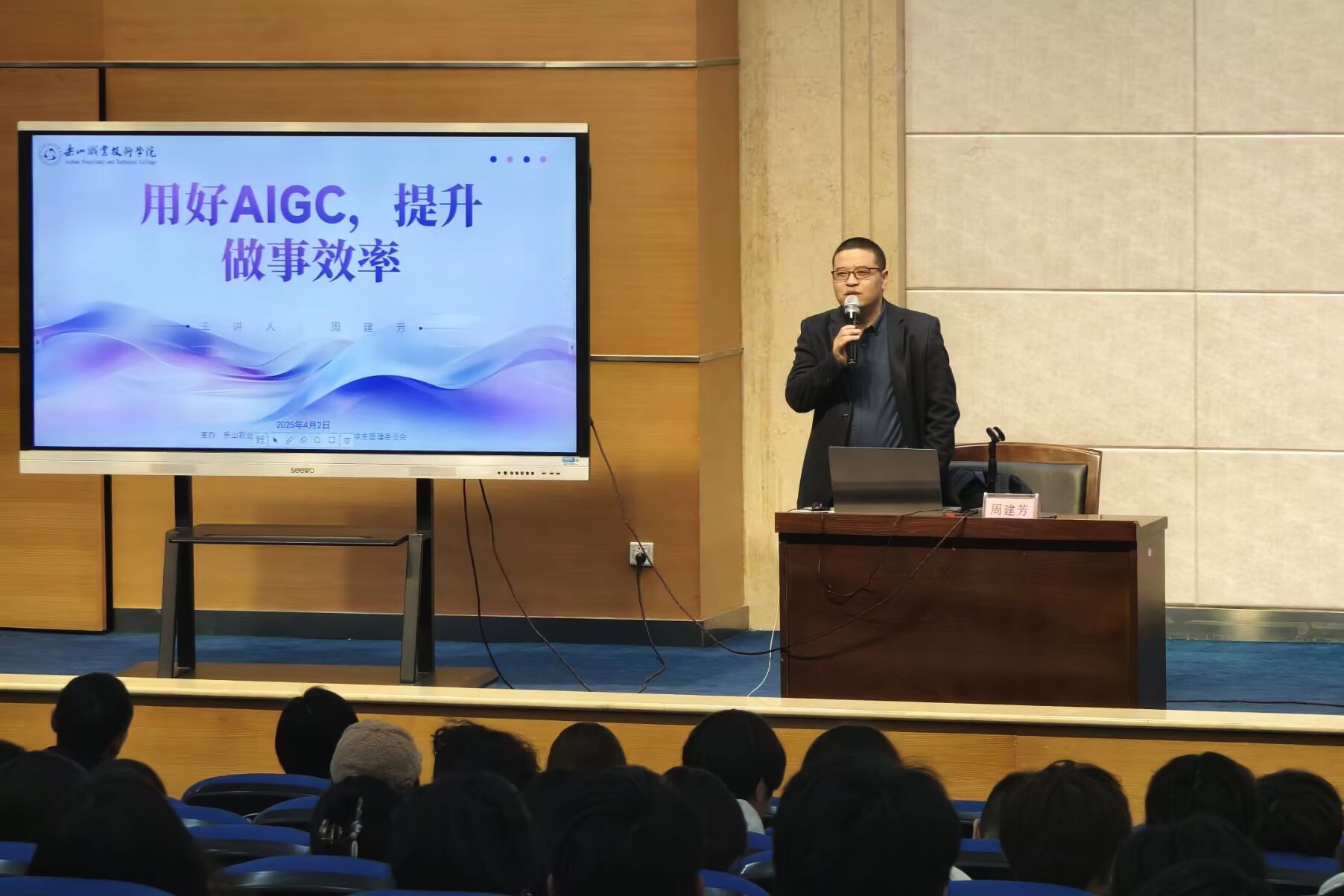 讲座上,周建芳教授以“用好AIGC,提升做事效率”为题,通过十几个实用案例,呈现deepseek、kimi、智谱清言、豆包、通义千问、讯飞星火、文心一言等AIGC工具在解决实际问题过程中的创新应用,涵盖学习、科研、工作等多个场景。分享了如何使用AIGC工具提升工作学习效率。同时结合具体场景与工具实操,呈现了如何快速掌握AI赋能的思维路径与实战技巧。