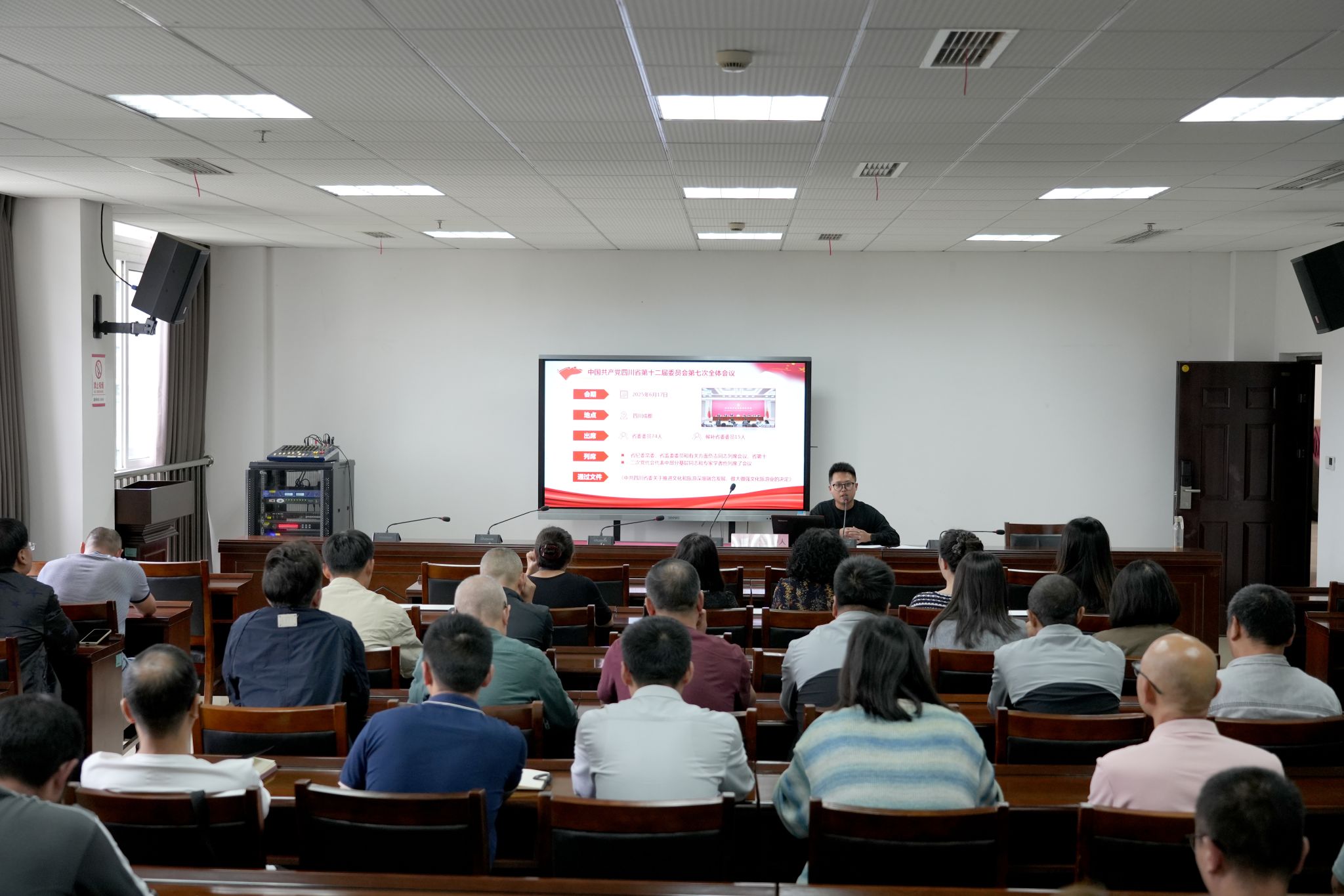 刘晓锐系统解读了省委十二届七次全会的重大意义、核心要义和实践要求。省委十二届七次全会以文旅深度融合发展为主题,全面贯彻落实习近平总书记“以文塑旅、以旅彰文”重要指示精神,深刻分析我省独特的资源禀赋和文化优势。结合地方发展实际,刘晓锐还将全会精神与乐山市委八届十一次全会确定的“124”文旅发展思路紧密结合,深入阐述了乐山文旅融合发展的实践路径。