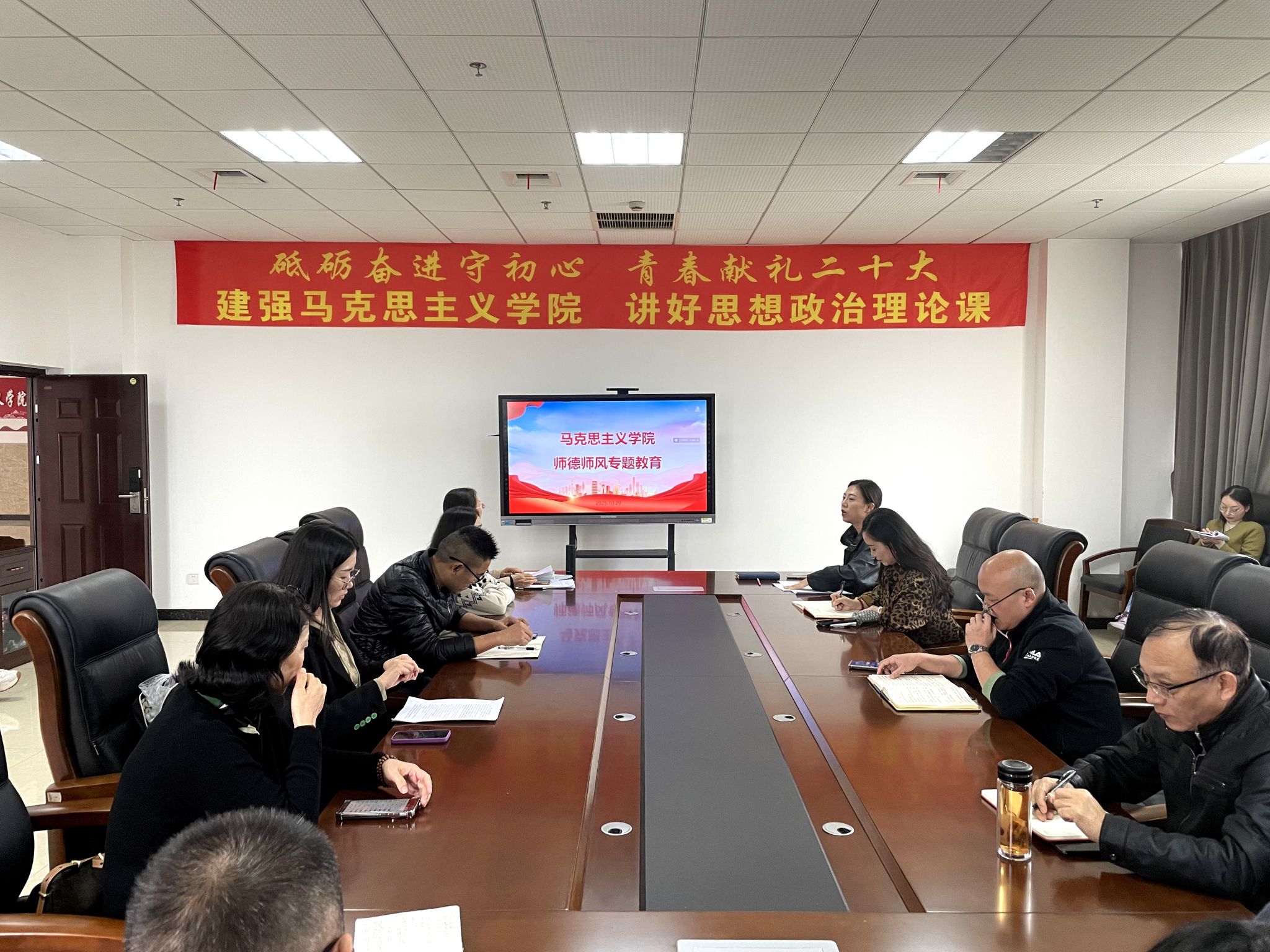 为进一步加强教师队伍师德师风建设,明确师德行为底线,规范师德评价考核,10月29日,马克思主义学院在1号教研楼410会议室组织全体教职工开展师德师风专题学习,集中学习《BV伟德官方网站教师师德失范行为处理办法》《BV伟德官方网站教师师德评价考核办法》(以下简称 “两个办法”)。