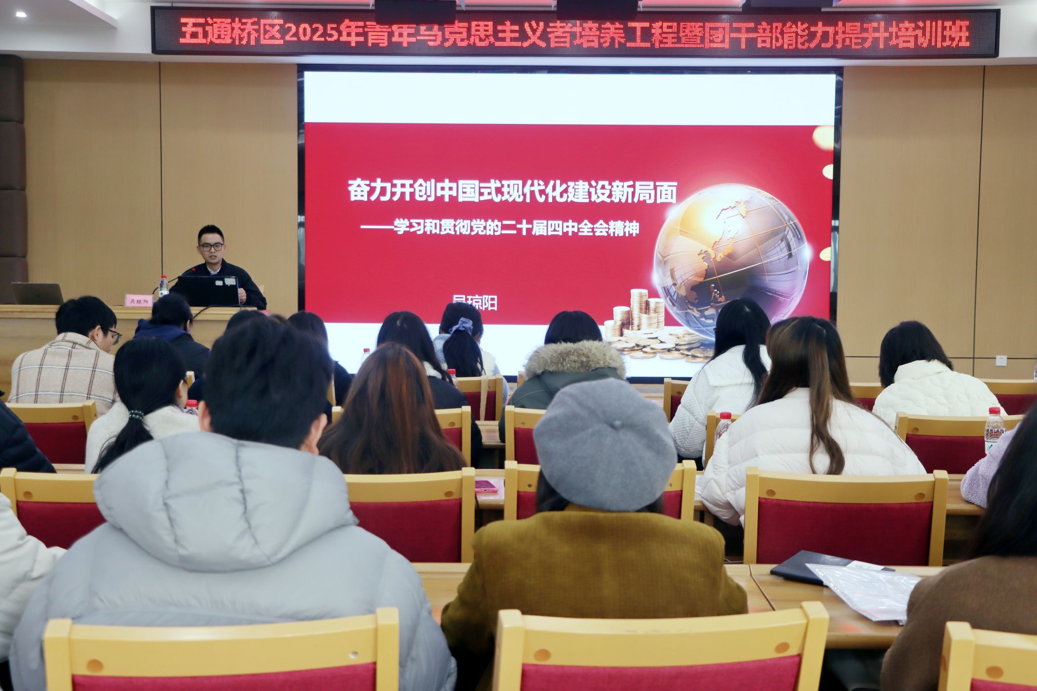 12月10日,由共青团乐山市五通桥区委员会主办的“五通桥区2025年青年马克思主义者培养工程暨团干部能力提升培训班”在五通桥区总工会顺利举行,马克思主义学院教师吴琼阳受邀开展专题宣讲,现场共计50余人参加。