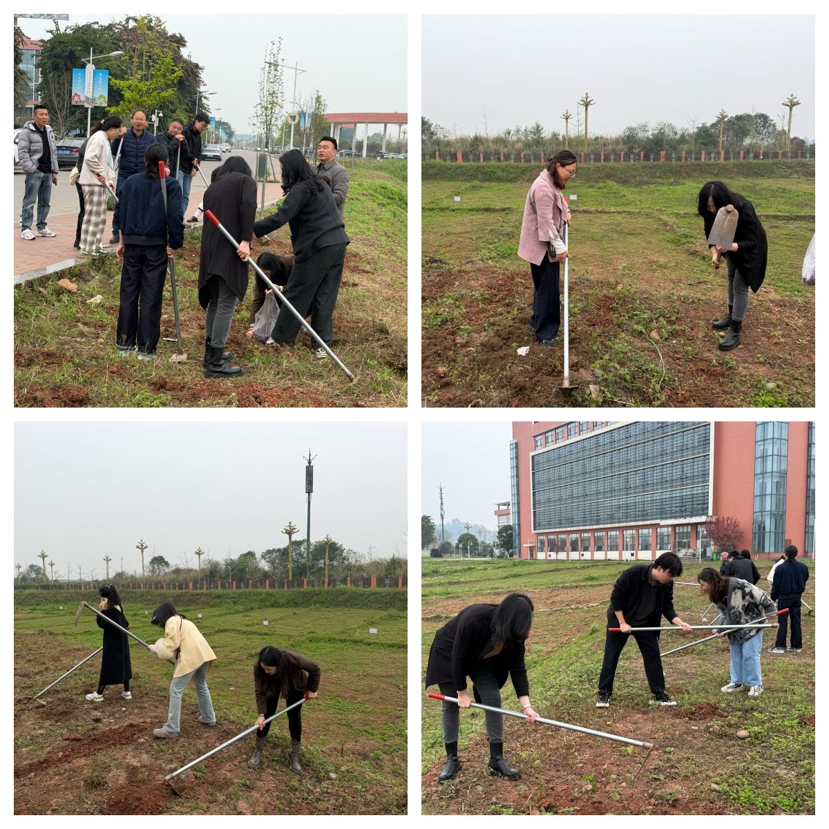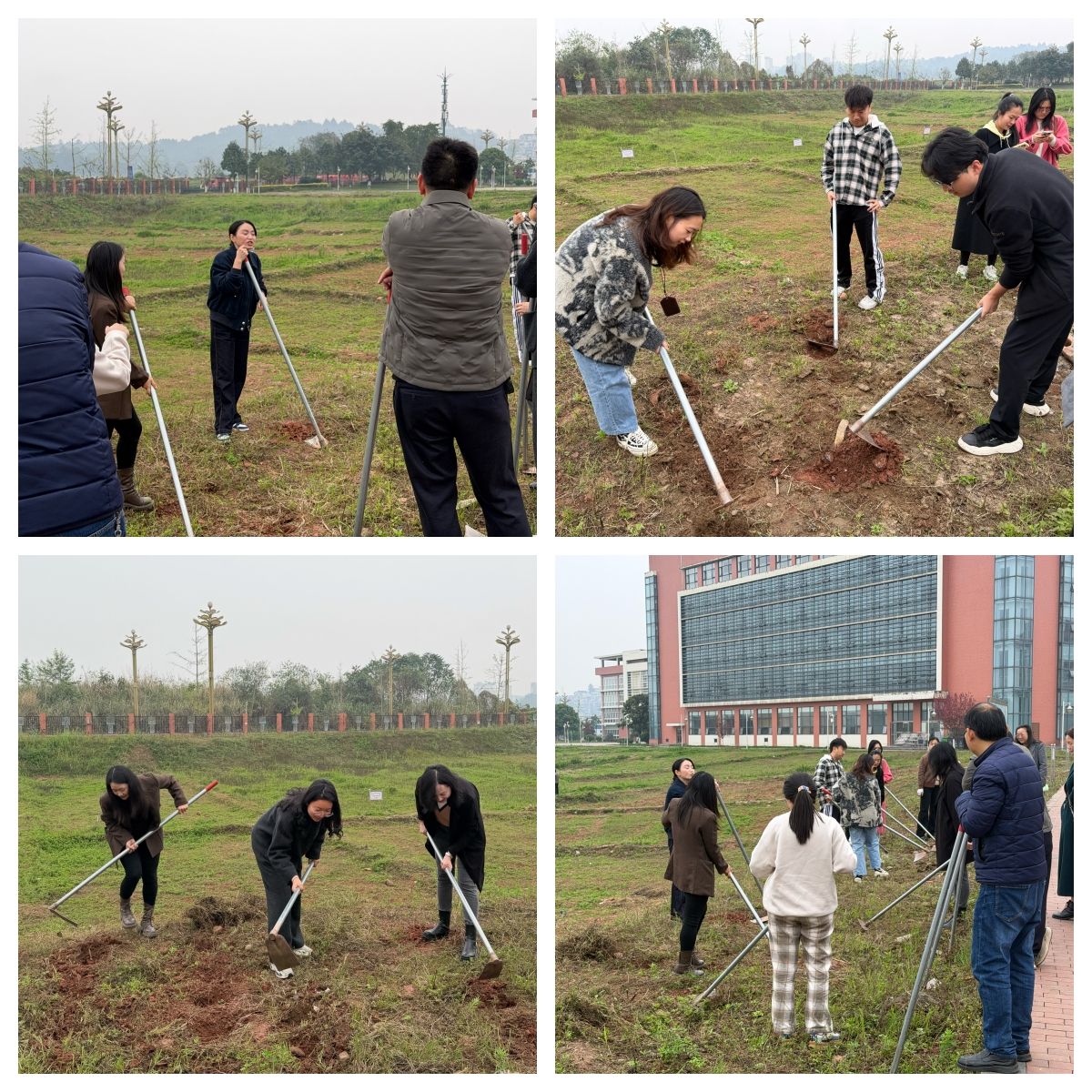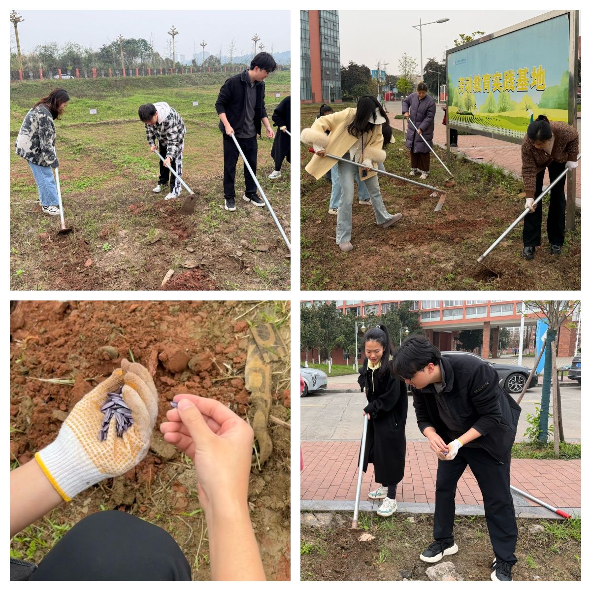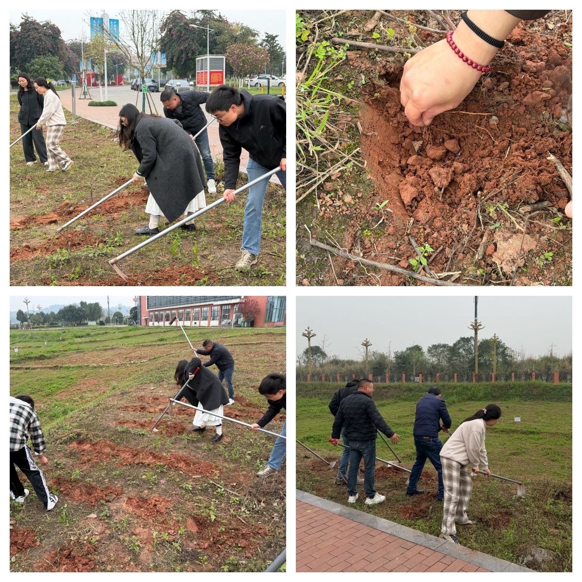 实践环节,辅导员们深入田间地头,开展实地观摩与劳动实践操作。大家拿起工具,松土、挖坑、播种、覆土、浇水,亲手种下一颗颗向日葵种子。从树苗管理到春耕播种,辅导员们在亲身劳作中感受着劳动带来的心理获得感,也在心中种下了以劳育人的责任与期许。