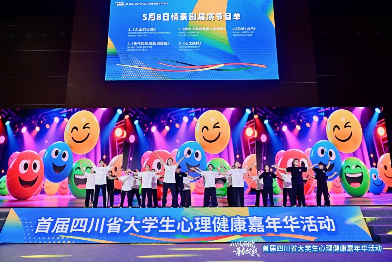 5月8日,由四川省教育厅、共青团四川省委主办的首届四川省大学生心理健康嘉年华活动在西南交通大学圆满举行。本次活动汇聚全省95所高校,涵盖心理健康教育典型案例展示、互动体验、专家咨询、创意展览及心理情景剧展演五大板块,全方位展现全省高校心理健康教育的创新成果。