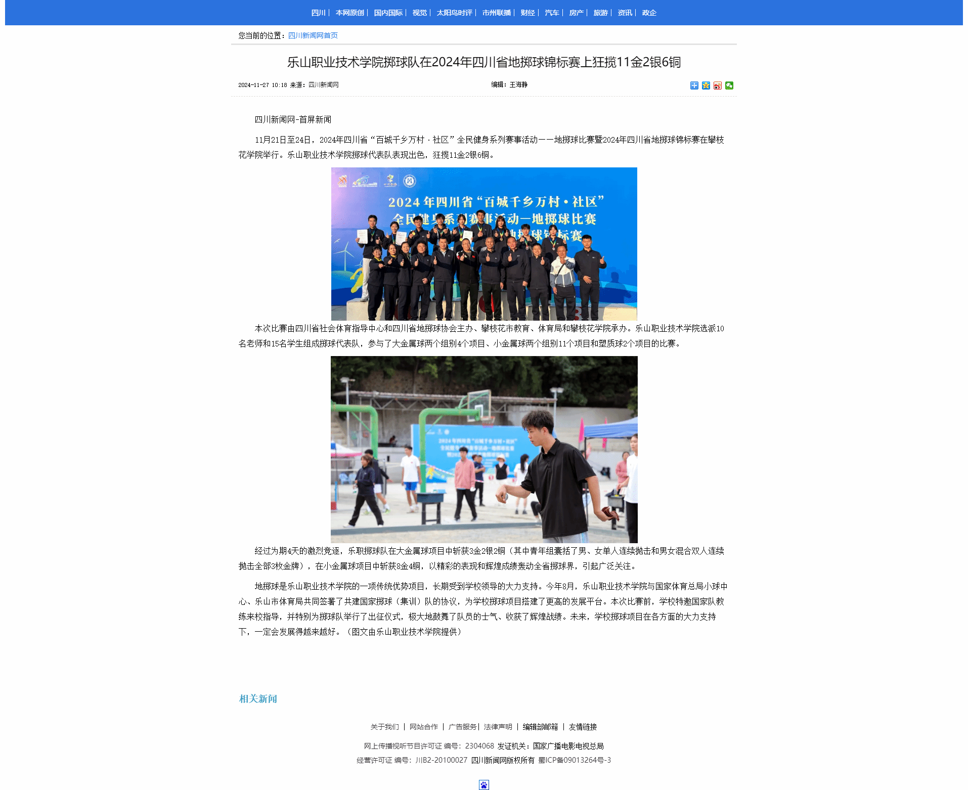 四川在线:乐山职院掷球队在四川省地掷球锦标赛狂揽11金