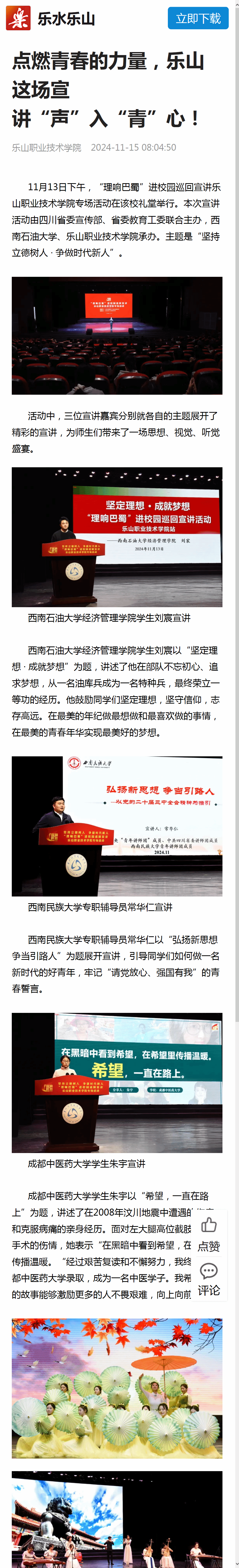 乐水乐山:点燃青春的力量,乐山这场宣讲“声”入“青”心!