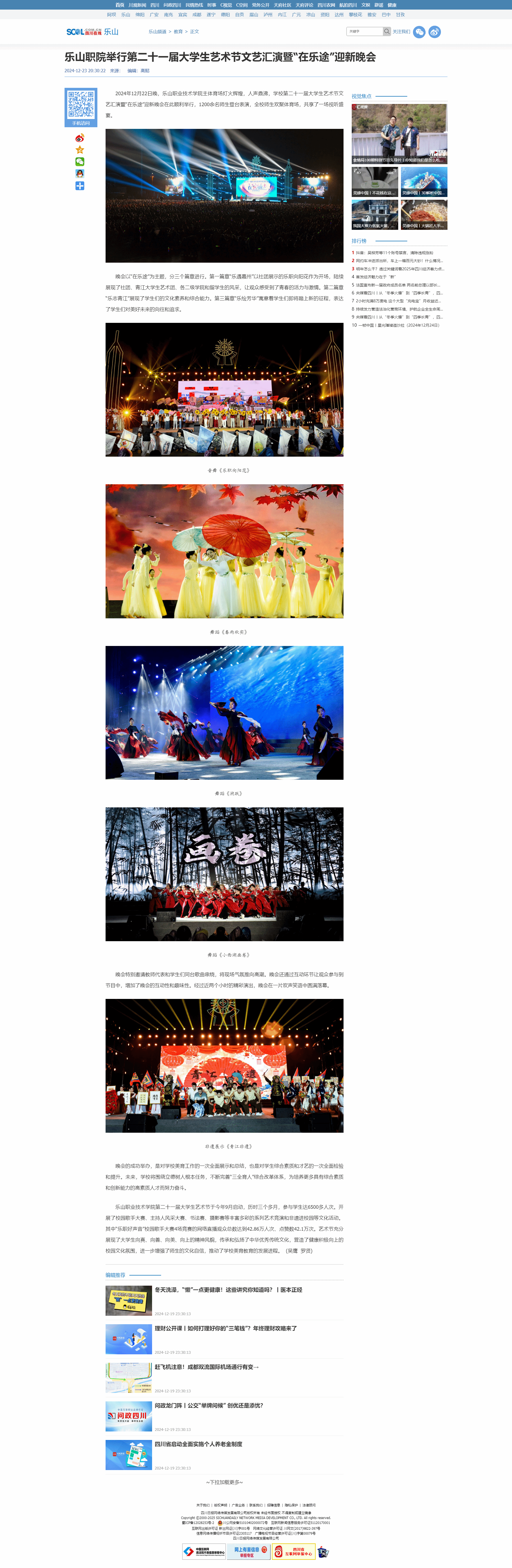 四川在线网:乐山职院举行第二十一届大学生艺术节文艺汇演暨“在乐途”迎新晚会