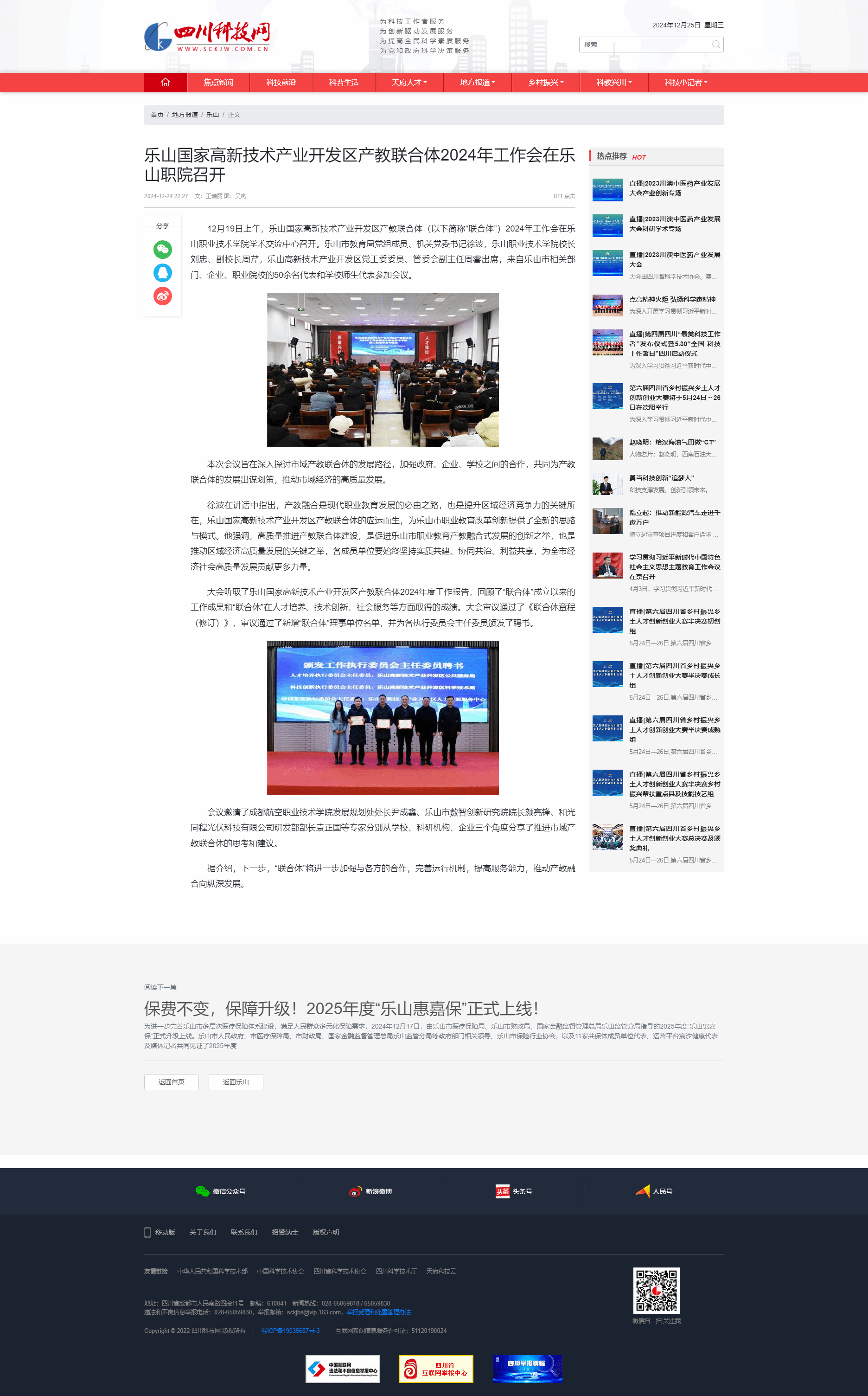 四川科技网:乐山国家高新技术产业开发区产教联合体2024年工作会在乐山职院召开