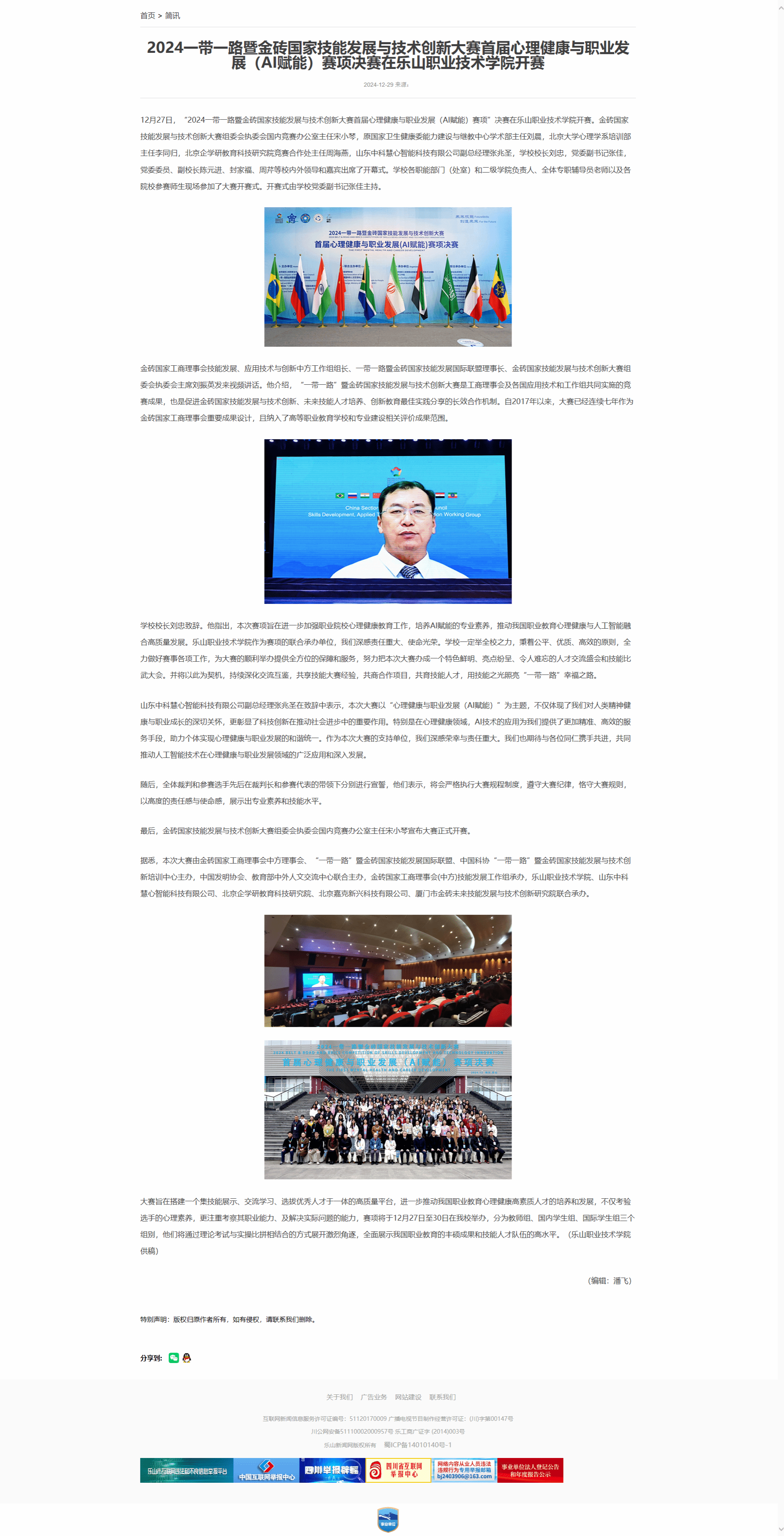 乐山新闻网:2024“一带一路”暨金砖国家技能发展与技术创新大赛首届心理健康与职业发展(AI赋能)赛项决赛在BV伟德官方网站开赛