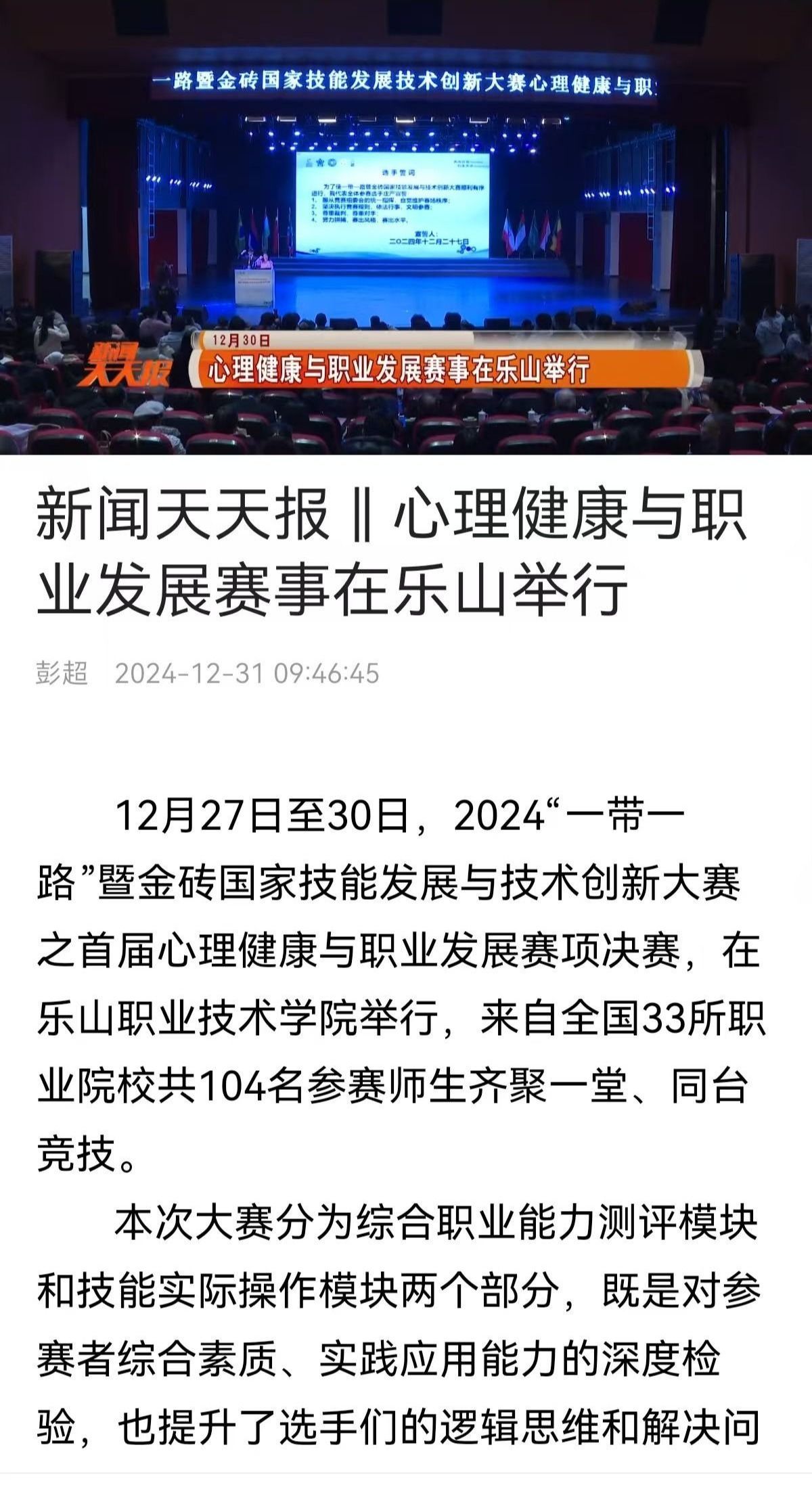 乐山电视台:新闻天天报 || 心理健康与职业发展赛事在乐山举行