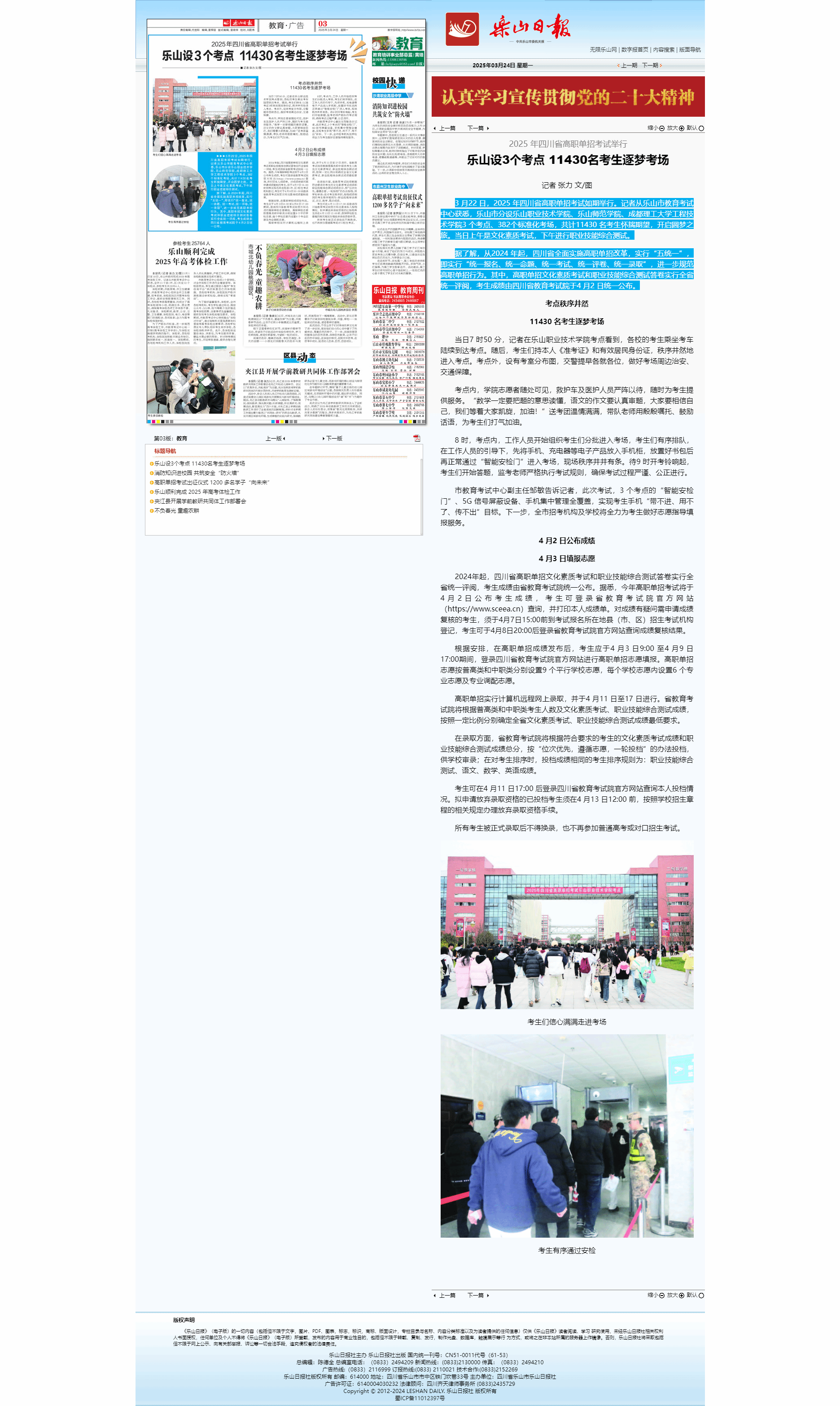 乐山日报:2025 年四川省高职单招考试举行 乐山设3个考点 11430名考生逐梦考场