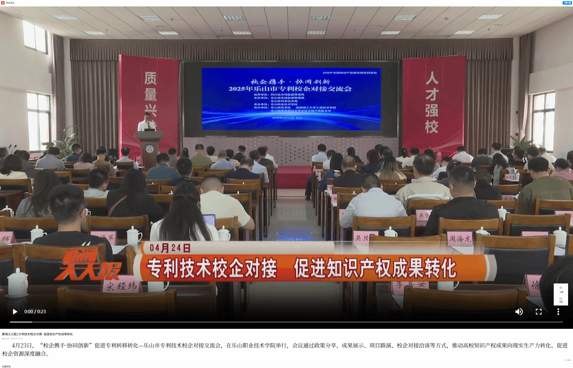 乐山电视台新闻天天报:专利技术校企对接 促进知识产权成果转化(视频)