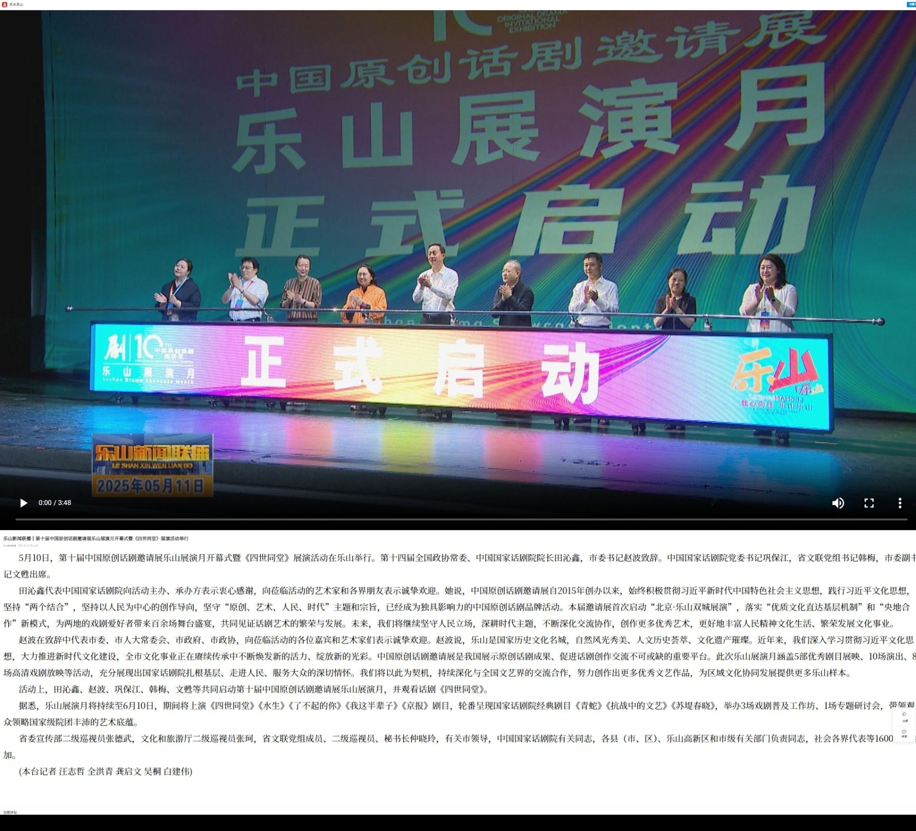乐山电视台新闻联播:第十届中国原创话剧邀请展乐山展演月开幕式暨《四世同堂》展演活动举行(视频)