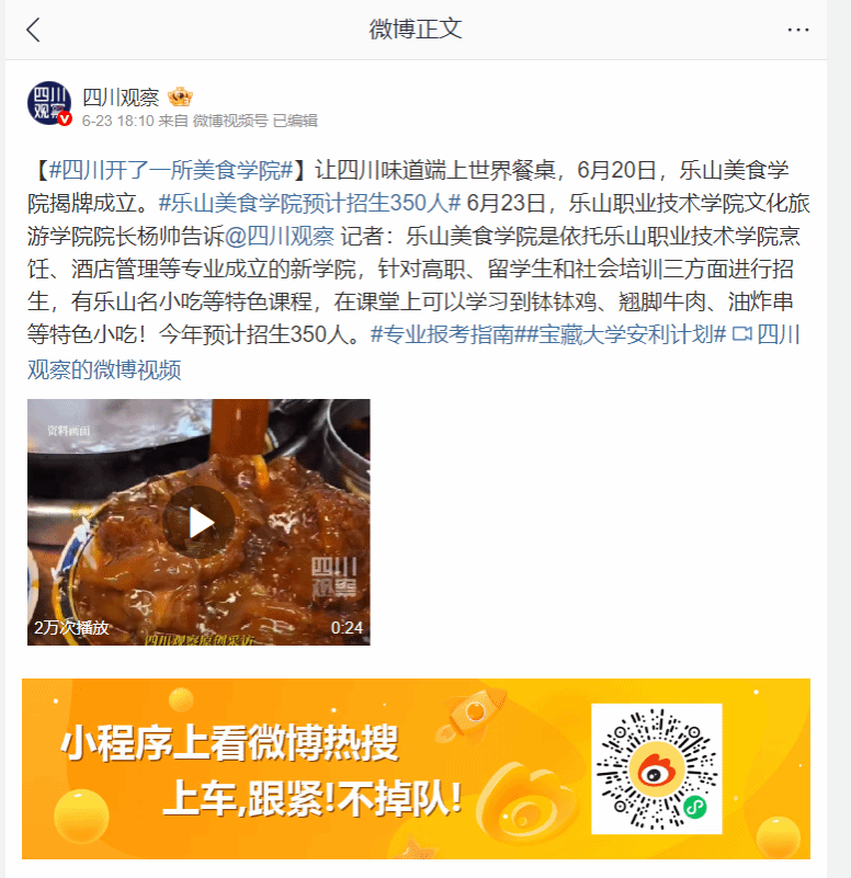 四川职教发布:乐山美食学院成立,开启职业教育赋能美食产业发展新篇章