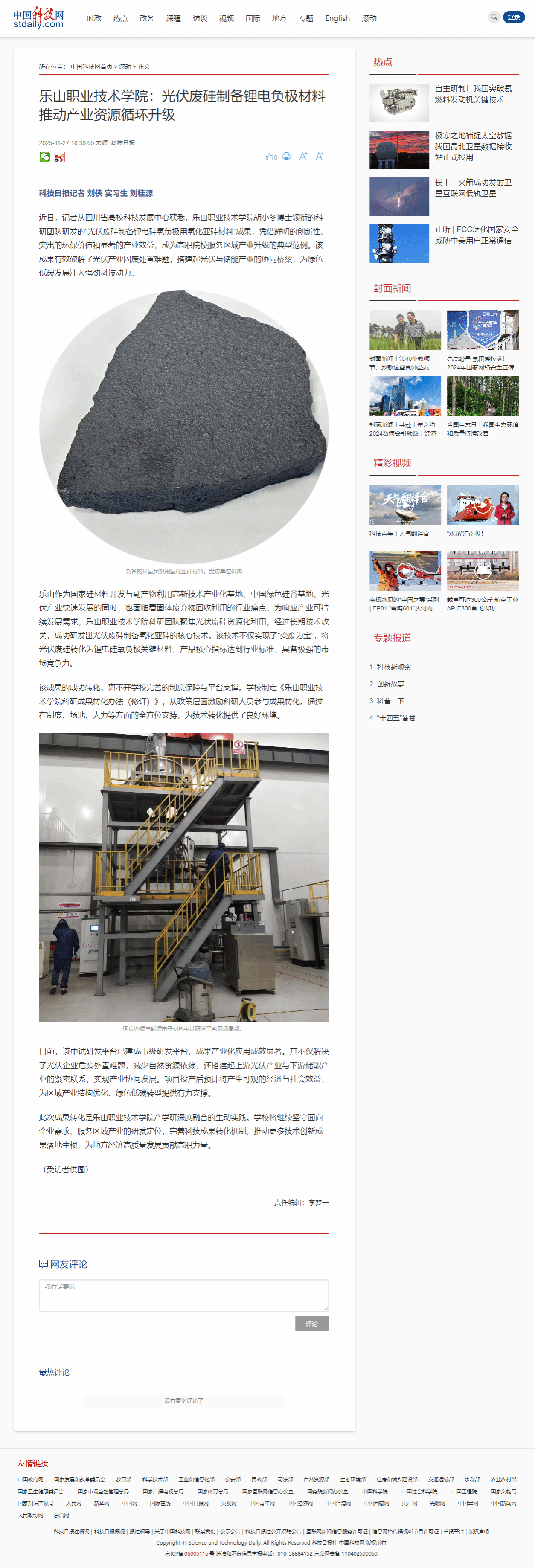 中国科技网:BV伟德官方网站——光伏废硅制备锂电负极材料 推动产业资源循环升级