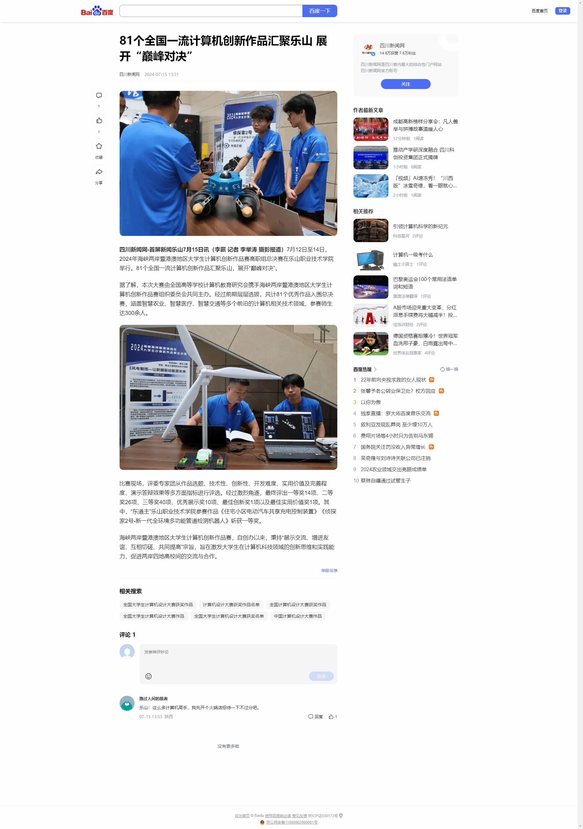 百度百家:81个全国一流计算机创新作品汇聚乐山 展开“巅峰对决”